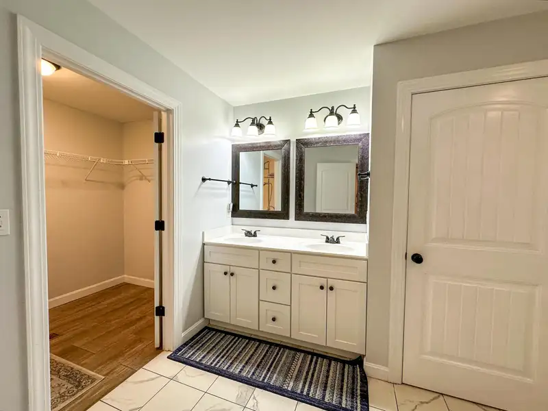 - Tile floors in bathrooms