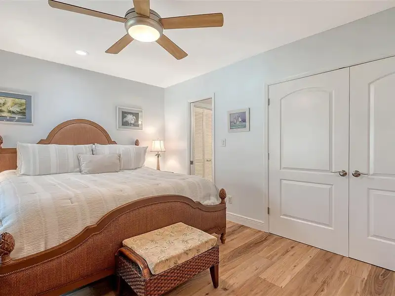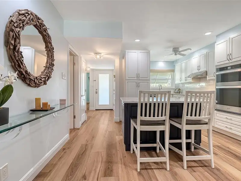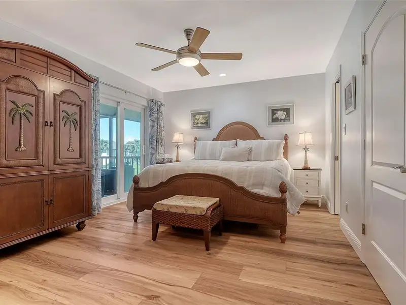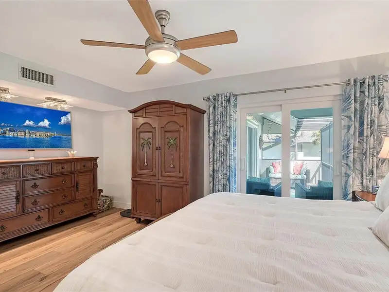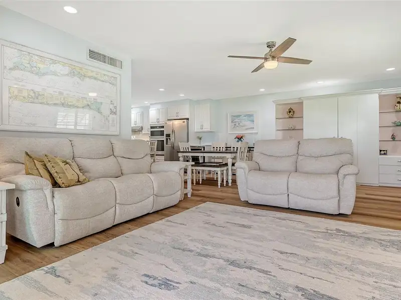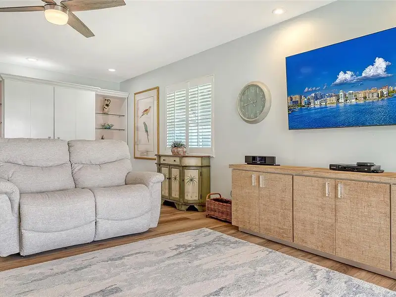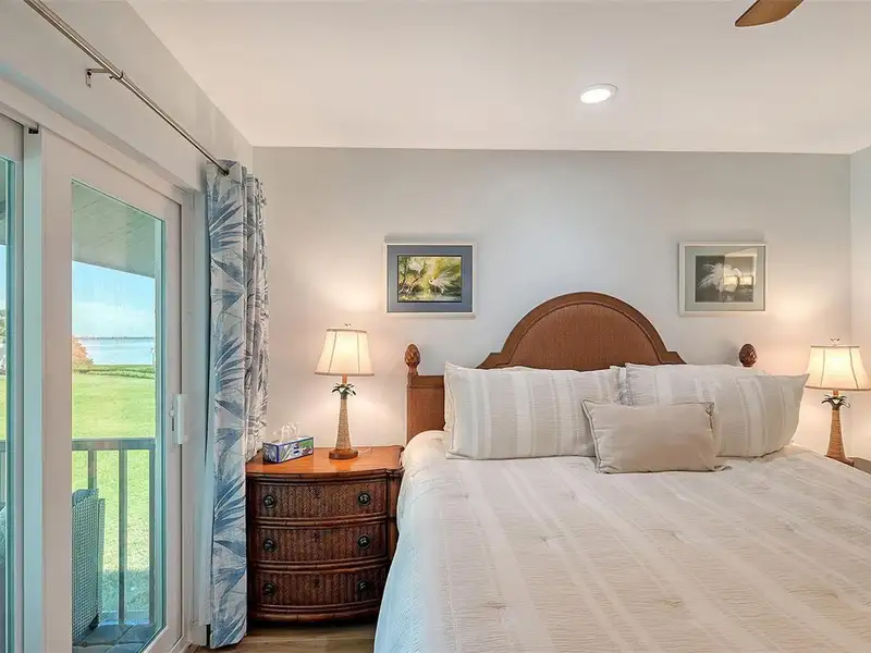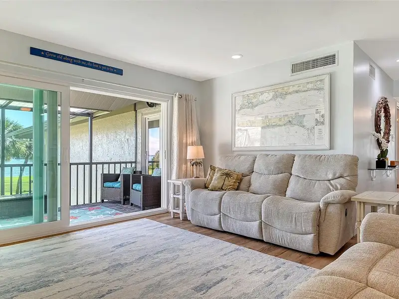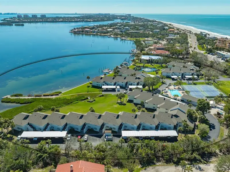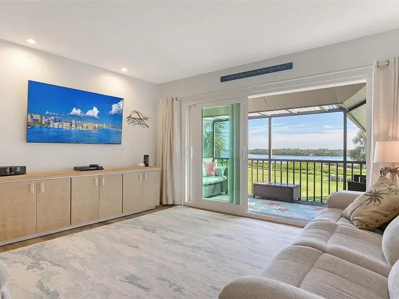 Beautiful, custom 2024 renovated second floor two bedroom, two bathroom Pelican Harbour & Beach Club condo with panoramic Sarasota Bay views plus Deeded Beach access right across the street. Stunning water views across Sarasota Bay are yours from the Great Room, the Primary Bedroom & from your waterfront, covered & screened in Balcony. Entertain your guests here or enjoy your own private dining outdoor lanai. Almost everything is new & improved in this open concept, sunny & bright home from updated electrical to new impact resistant hurricane proof sliders & windows throughout. You’ll really enjoy the large new window in the kitchen with great views of the pool so you can keep an eye on family & grandchildren. The totally redesigned kitchen features all new custom raised panel cabinetry with soft close drawers, light gray with graining Quartz center island & kitchen counters, Frigidaire Gallery induction cooktop, white subway tile back splash & built in Whirlpool microwave & oven. Newly installed Luxury Vinyl Plank flooring is 9” wide plank in a light oak color. Other improvements include a wine refrigerator, a n HVAC system installed in 2023 plus a new roof on this building in 2024 & exterior painted in 2024. The Sellers have invested close to $100,000 to accomplish this stunning remodel. The open floor plan features a large Great Room which includes the dining area & the living room with several couches plus a double bed size Murphy bed attractively hidden between two built in bookshelves & cabinetry for extra sleeping accommodation. The generous sized Primary Bedroom with En Suite bath has serene waterfront Bay views with sliders opening to the screened in balcony. The En Suite features dual sinks, a custom walk-in tub/shower combo & a Toto toilet. The second guest bedroom is bright & comfortable with an adjoining bath with a shower. Bonus feature of the in unit laundry room is a full size LG high efficiency washer & dryer. There is abundant storage room in this unit especially in the number of new kitchen cupboards, storage areas & closets. Assigned storage lockers are also available in the mail room. Pelican Harbour & Beach Club condominium complex offers one of the best Amenity packages on Longboat Key including 200 feet of private deeded beach with new lounge chairs, resort style heated pool, adjoining clubhouse, marina for boats up to 28 feet with Sarasota Bay frontage of 800 feet, kayak storage & launch area and is large dog/pet friendly complex plus has tennis & pickleball courts which have recently been renovated & painted. On site maintenance staff plus a professional management company, funded reserves and has successfully passed its milestone inspection for the beach side midrise condo building plus has installed brand new roofs & hurricane rated carports. None of the units in this building sustained any damage from hurricanes Helene or Milton or had any water intrusion. Pelican Harbour’s perfect location at Mid Key Longboat is close to all the best restaurants & shops on Longboat Key and Bay Front Park which offers walk in pickleball games, tennis courts, dog park areas plus an exercise/fitness classes building.