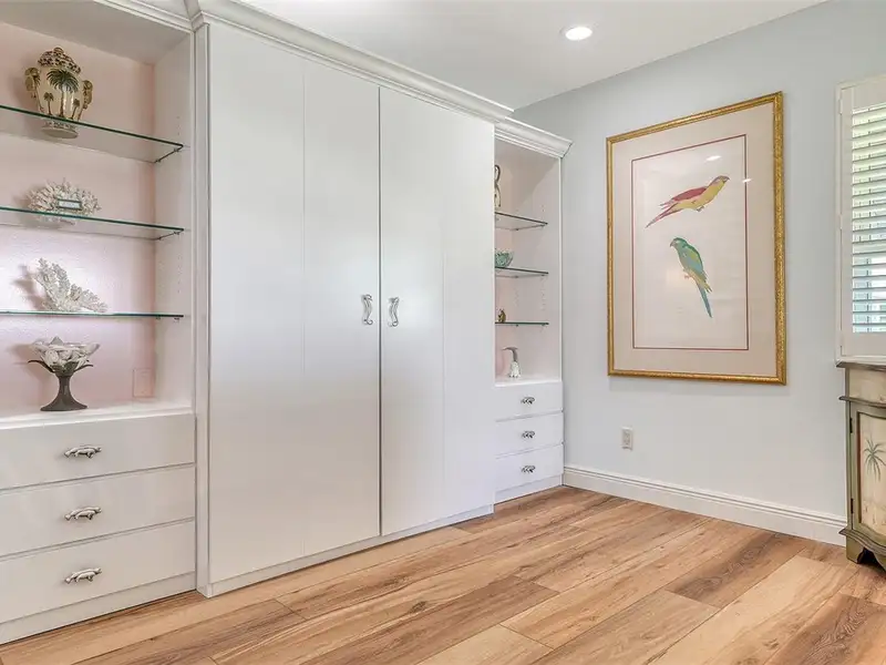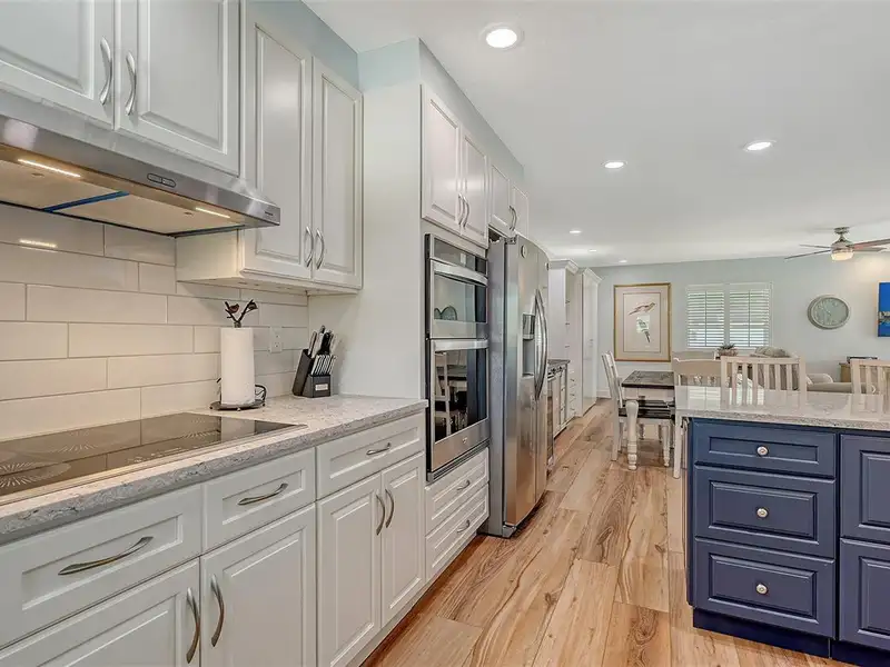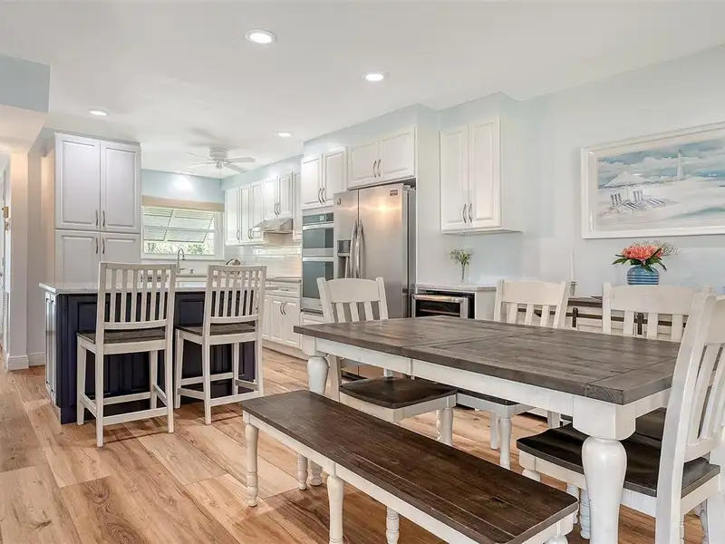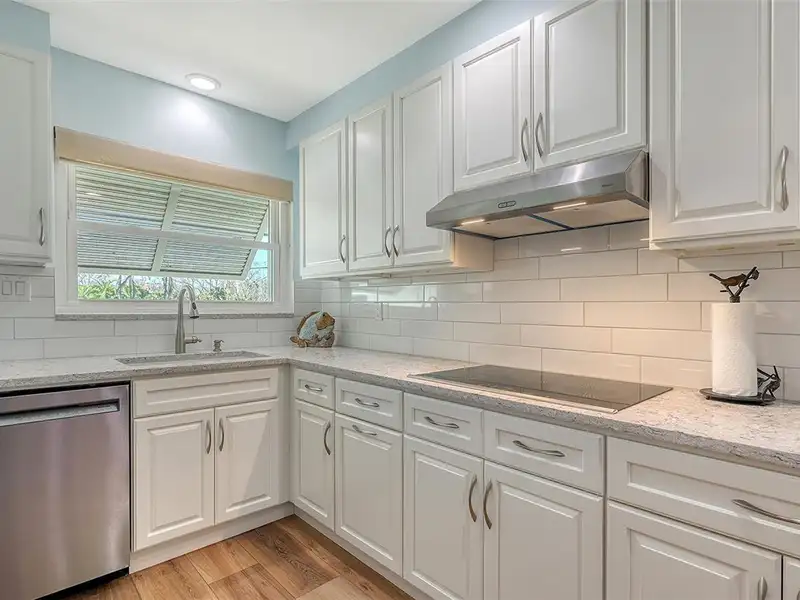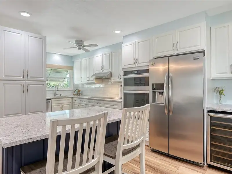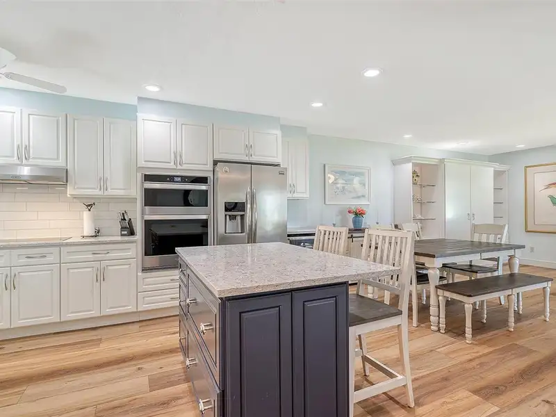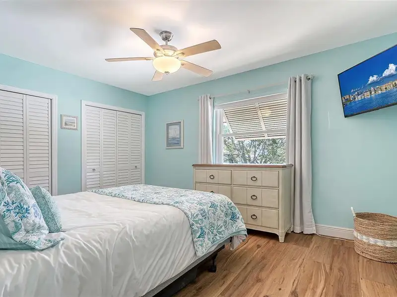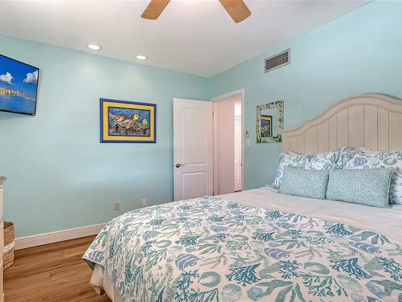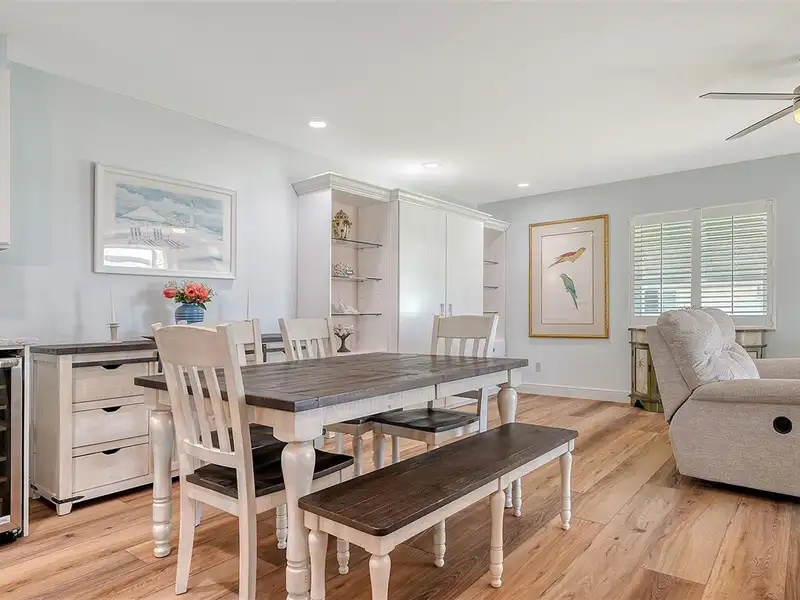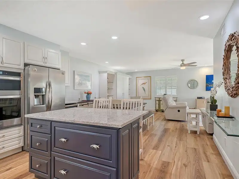 Beautiful, custom 2024 renovated second floor two bedroom, two bathroom Pelican Harbour & Beach Club condo with panoramic Sarasota Bay views plus Deeded Beach access right across the street. Stunning water views across Sarasota Bay are yours from the Great Room, the Primary Bedroom & from your waterfront, covered & screened in Balcony. Entertain your guests here or enjoy your own private dining outdoor lanai. Almost everything is new & improved in this open concept, sunny & bright home from updated electrical to new impact resistant hurricane proof sliders & windows throughout. You’ll really enjoy the large new window in the kitchen with great views of the pool so you can keep an eye on family & grandchildren. The totally redesigned kitchen features all new custom raised panel cabinetry with soft close drawers, light gray with graining Quartz center island & kitchen counters, Frigidaire Gallery induction cooktop, white subway tile back splash & built in Whirlpool microwave & oven. Newly installed Luxury Vinyl Plank flooring is 9” wide plank in a light oak color. Other improvements include a wine refrigerator, a n HVAC system installed in 2023 plus a new roof on this building in 2024 & exterior painted in 2024. The Sellers have invested close to $100,000 to accomplish this stunning remodel. The open floor plan features a large Great Room which includes the dining area & the living room with several couches plus a double bed size Murphy bed attractively hidden between two built in bookshelves & cabinetry for extra sleeping accommodation. The generous sized Primary Bedroom with En Suite bath has serene waterfront Bay views with sliders opening to the screened in balcony. The En Suite features dual sinks, a custom walk-in tub/shower combo & a Toto toilet. The second guest bedroom is bright & comfortable with an adjoining bath with a shower. Bonus feature of the in unit laundry room is a full size LG high efficiency washer & dryer. There is abundant storage room in this unit especially in the number of new kitchen cupboards, storage areas & closets. Assigned storage lockers are also available in the mail room. Pelican Harbour & Beach Club condominium complex offers one of the best Amenity packages on Longboat Key including 200 feet of private deeded beach with new lounge chairs, resort style heated pool, adjoining clubhouse, marina for boats up to 28 feet with Sarasota Bay frontage of 800 feet, kayak storage & launch area and is large dog/pet friendly complex plus has tennis & pickleball courts which have recently been renovated & painted. On site maintenance staff plus a professional management company, funded reserves and has successfully passed its milestone inspection for the beach side midrise condo building plus has installed brand new roofs & hurricane rated carports. None of the units in this building sustained any damage from hurricanes Helene or Milton or had any water intrusion. Pelican Harbour’s perfect location at Mid Key Longboat is close to all the best restaurants & shops on Longboat Key and Bay Front Park which offers walk in pickleball games, tennis courts, dog park areas plus an exercise/fitness classes building.