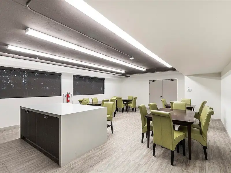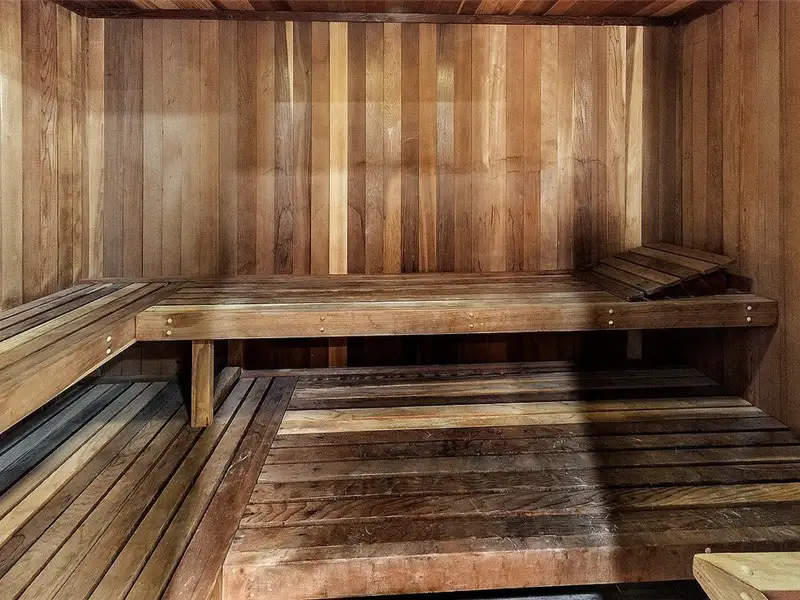 - Building amenities: pool, fitness center, sauna