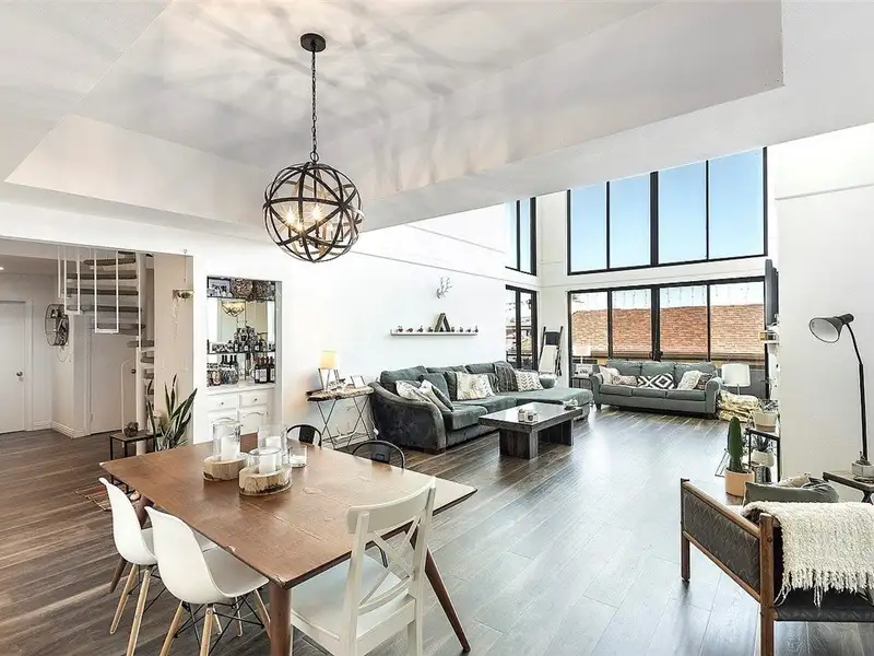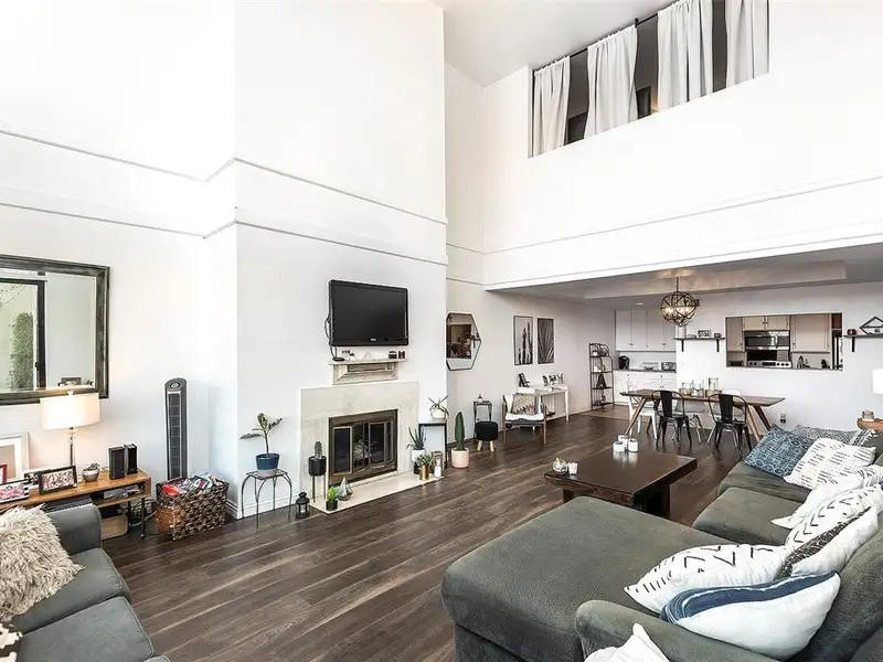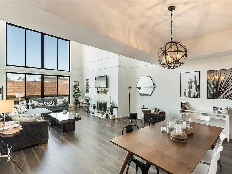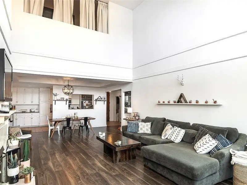 - Two-story living room with city views