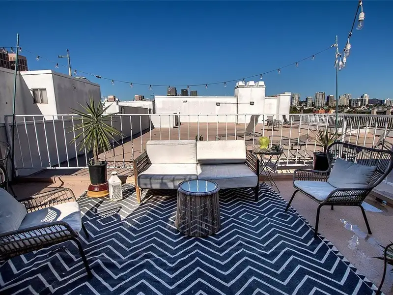 - Private rooftop deck with city views