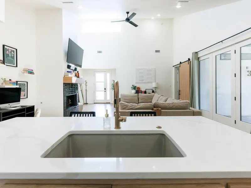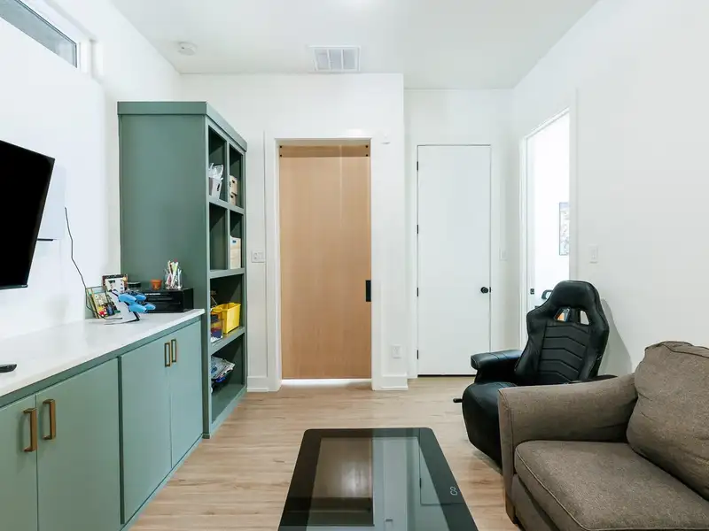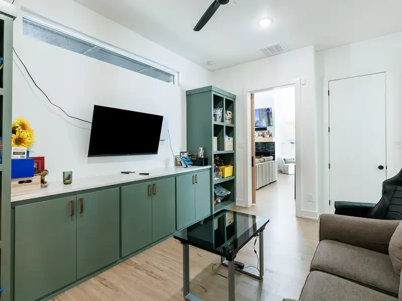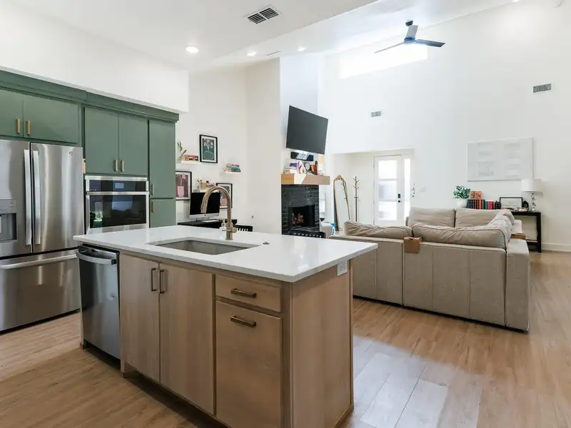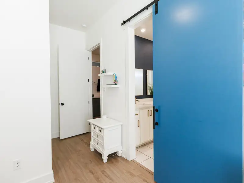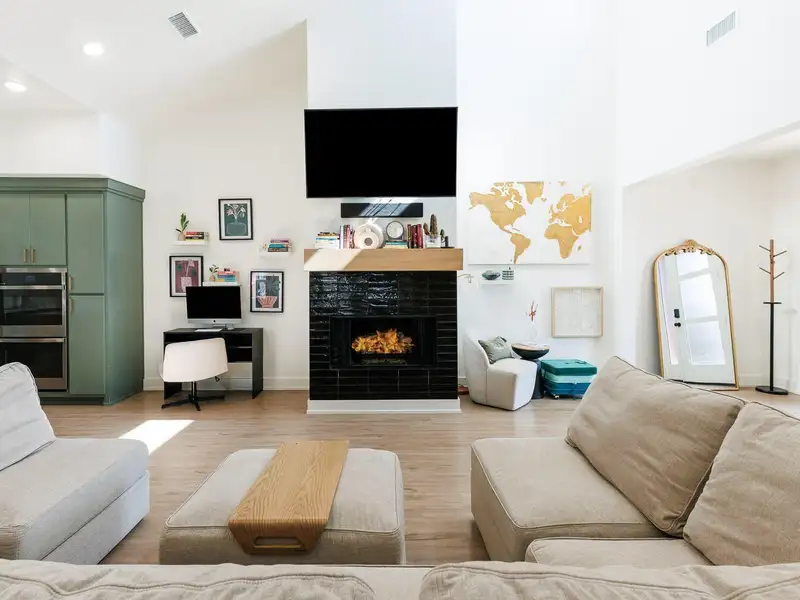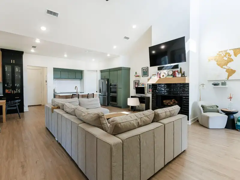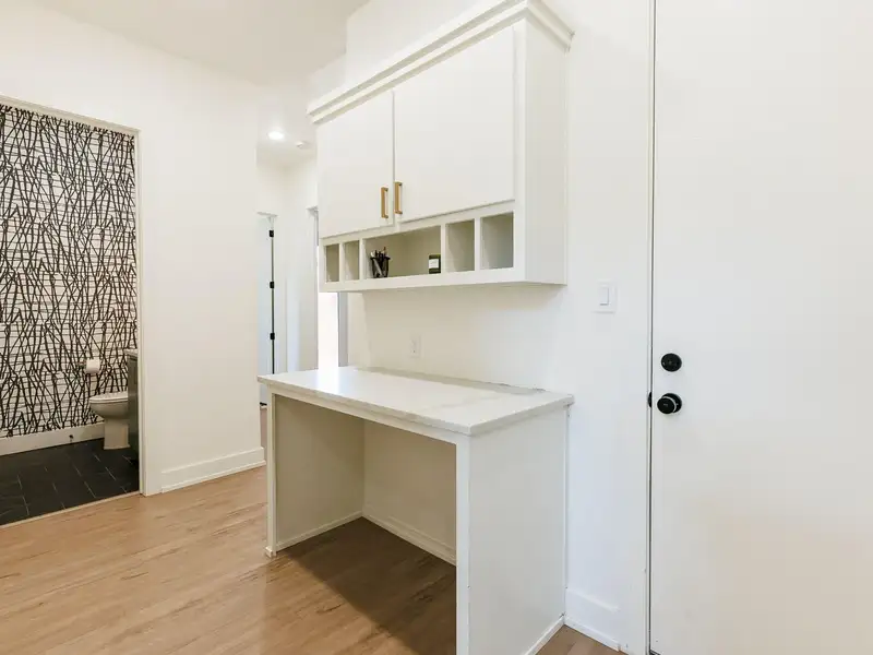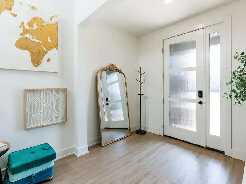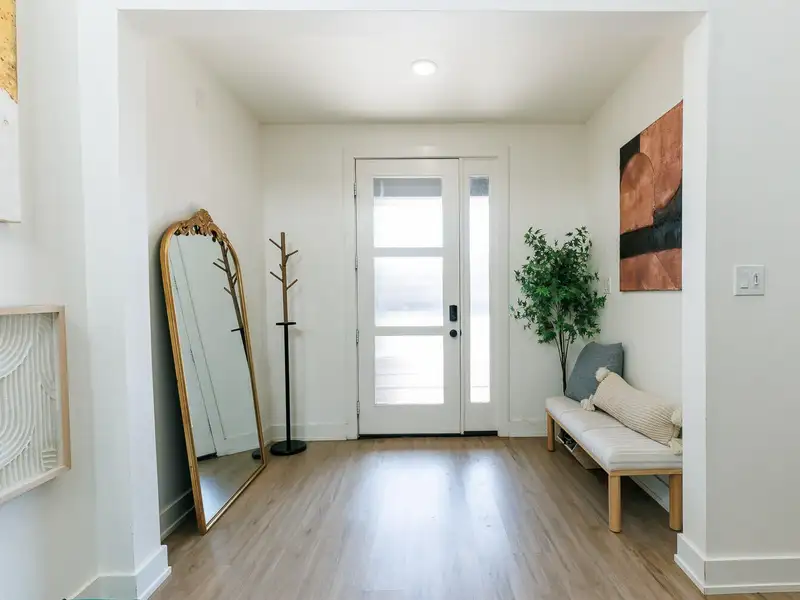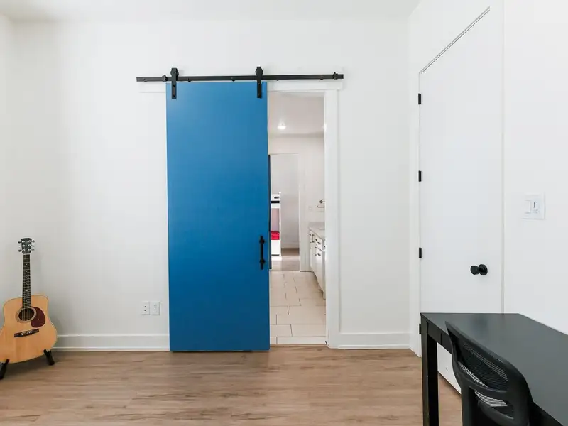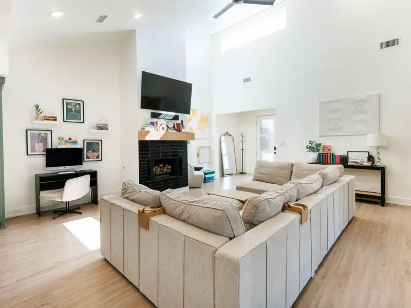 - High ceilings and vinyl plank flooring