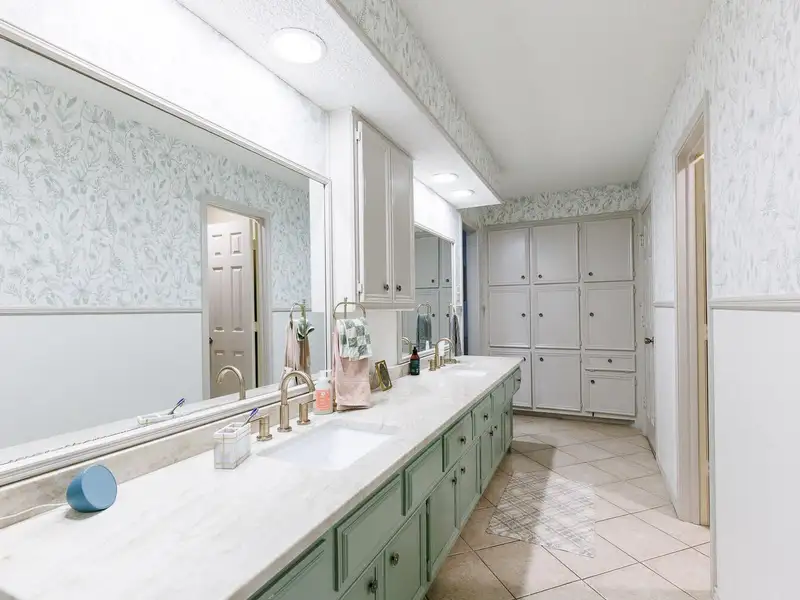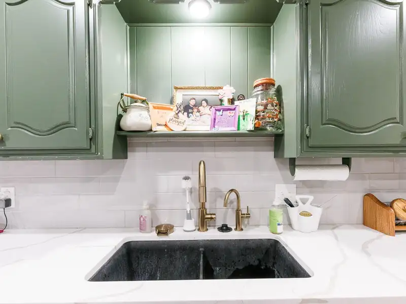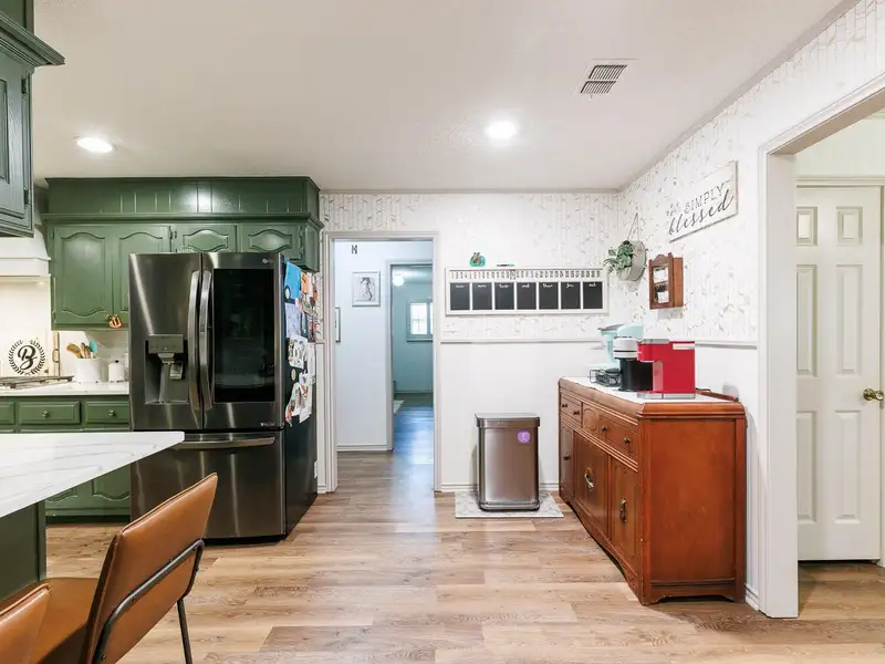 - Updated kitchen with bold cabinets