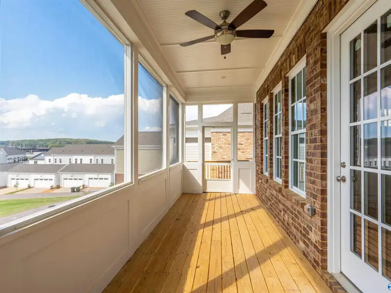 - Covered and screened wood deck