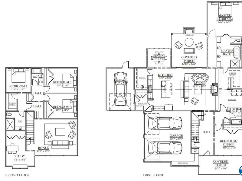 - Large covered side porch with fireplace