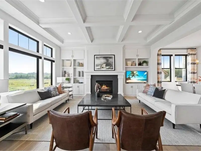 - Four-season porch with stone fireplace