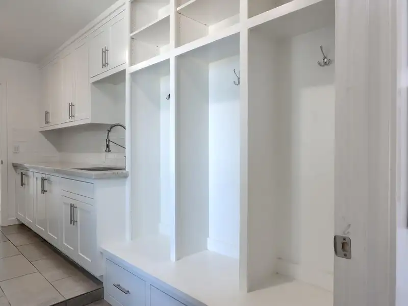 - Custom wide plank wood flooring