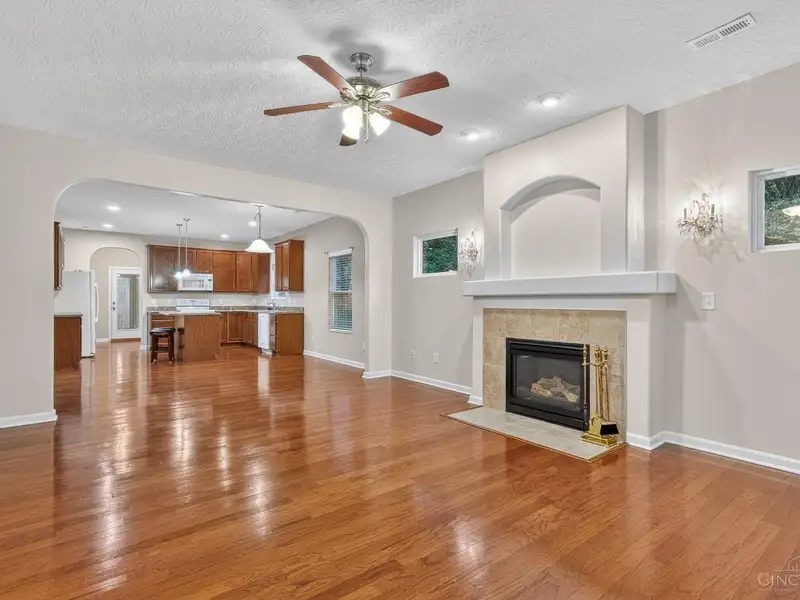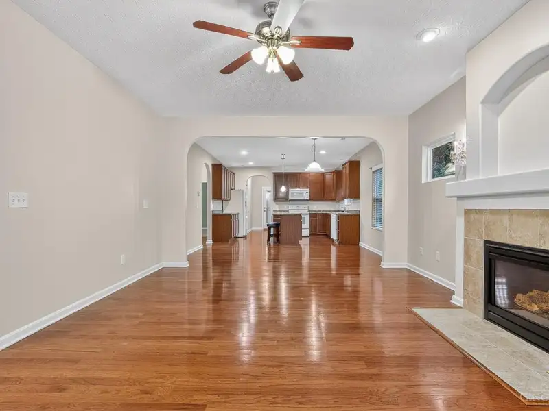 - Open floor plan with hardwood floors