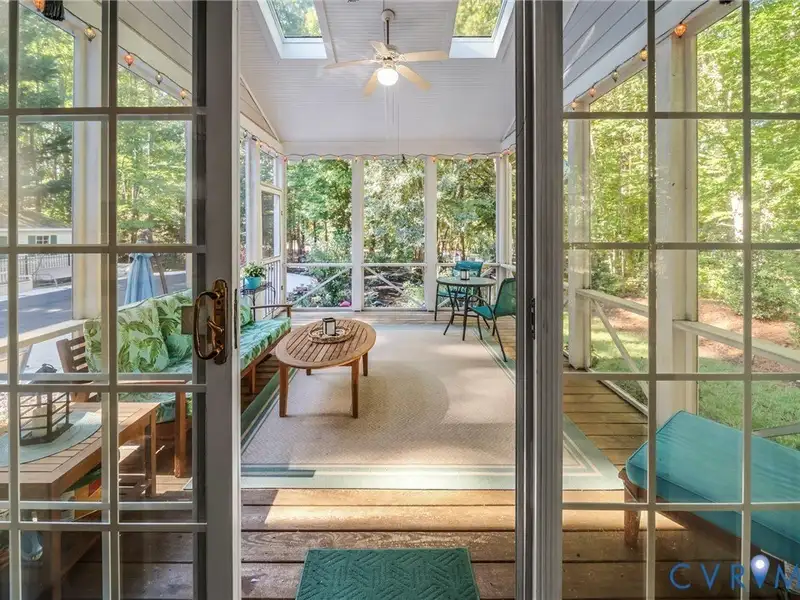 - Screened-in porch with koi pond