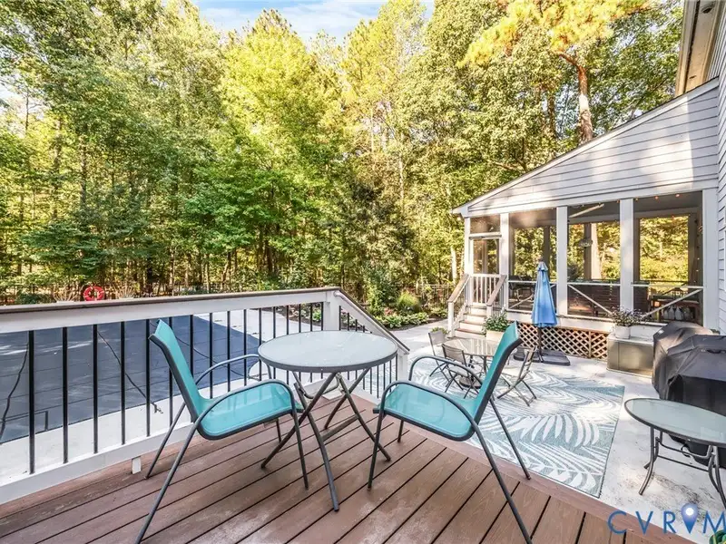 - First-floor primary suite with private deck