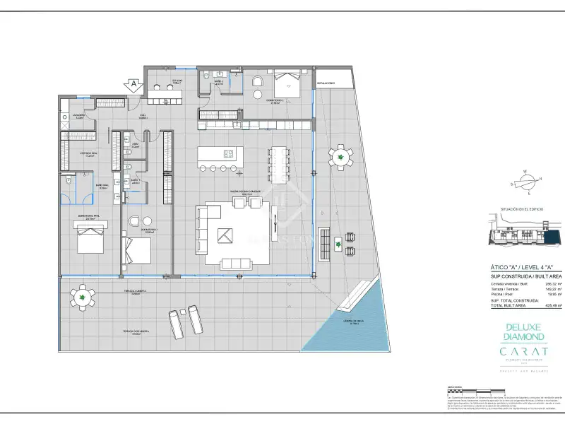 - Large 149 m² terrace with corner pool