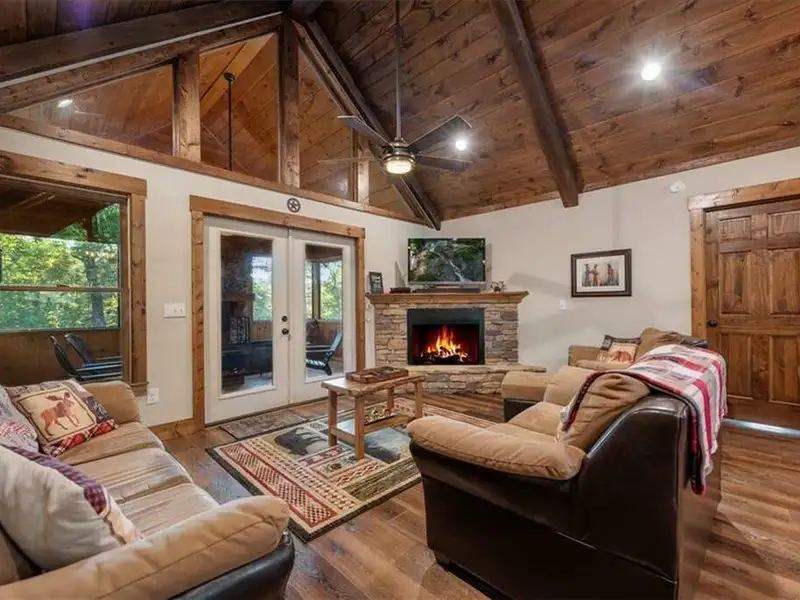 - Cozy wood-burning fireplace included