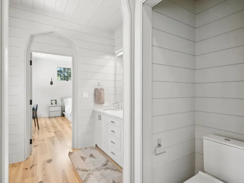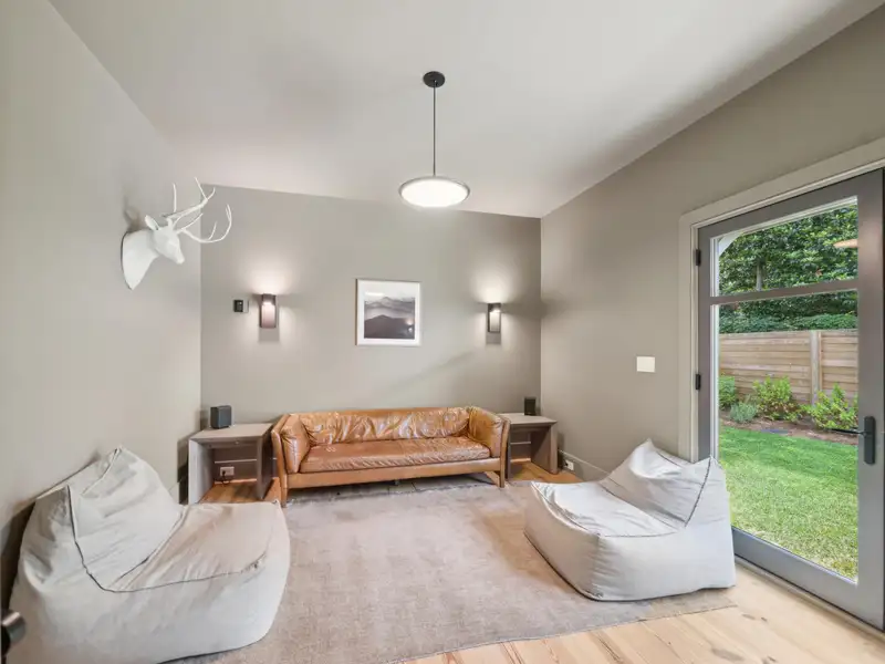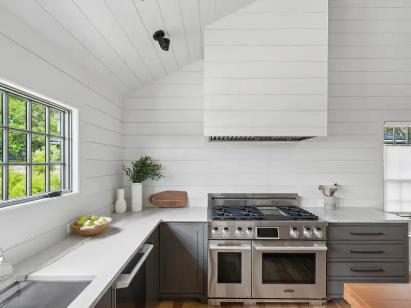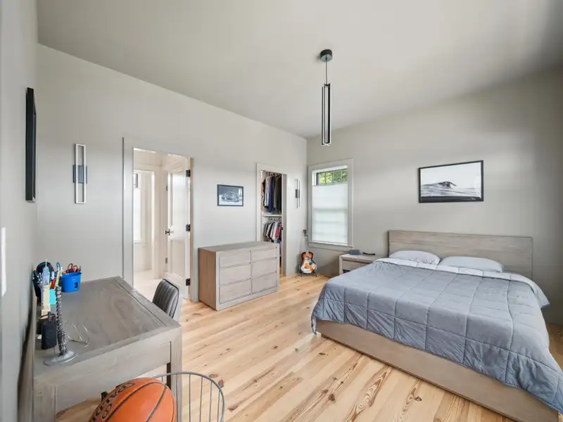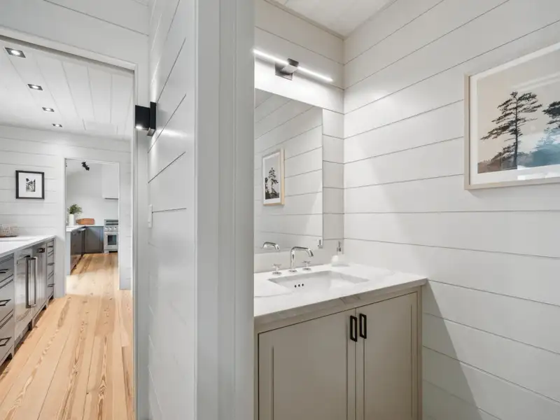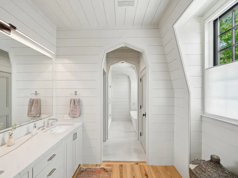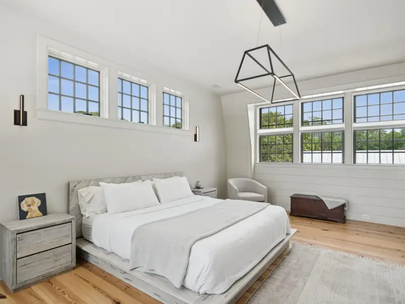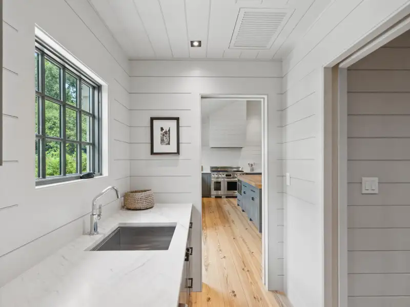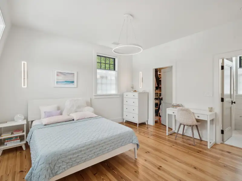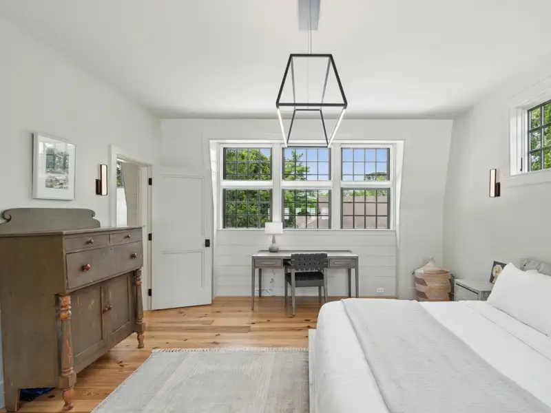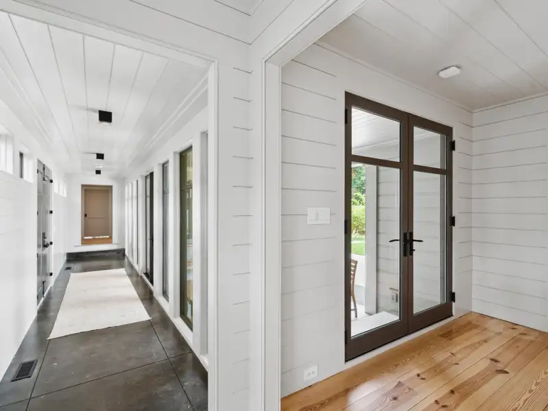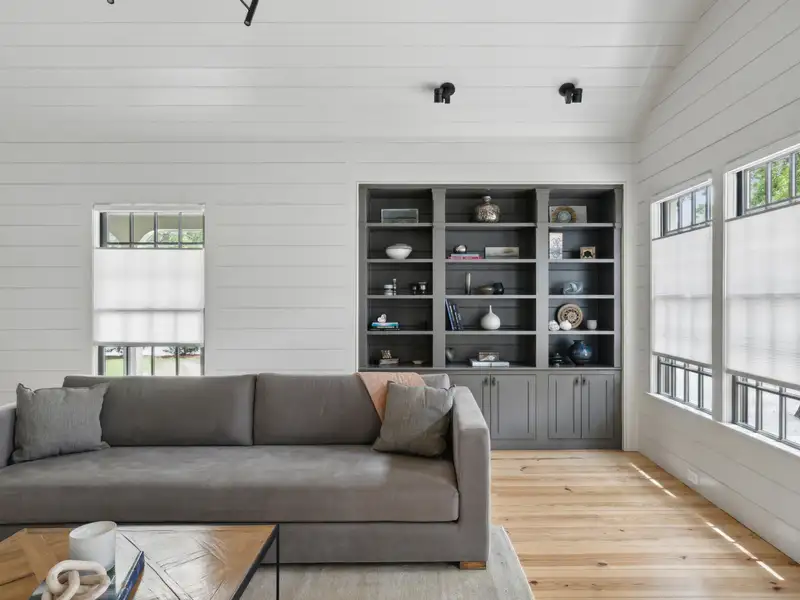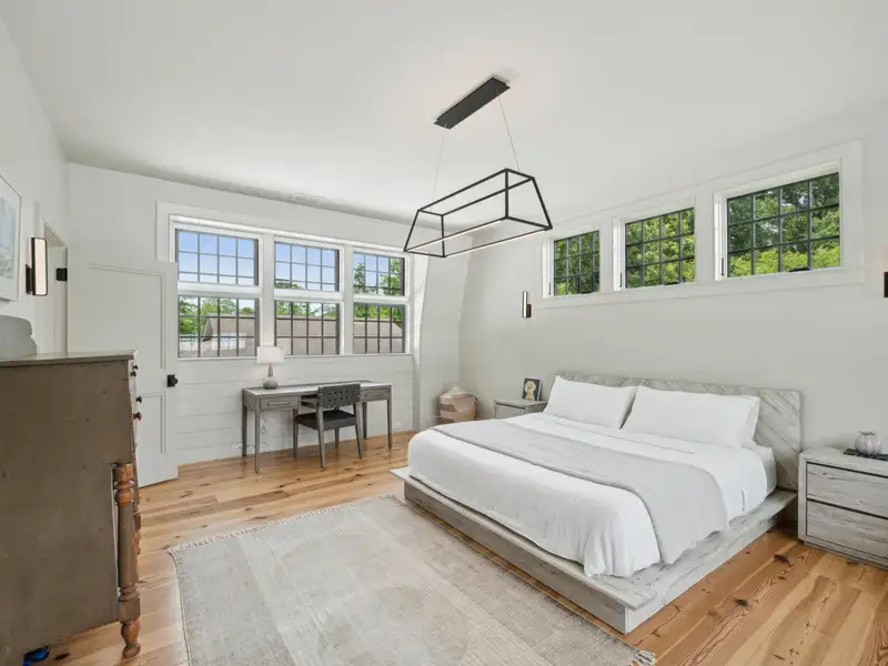 - Vaulted ceilings and reclaimed heart pine floors