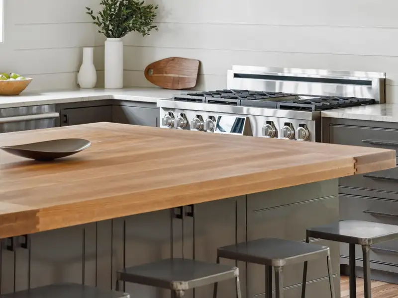 - High-end kitchen with custom maple island