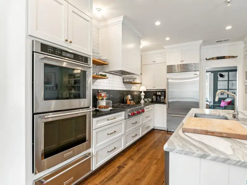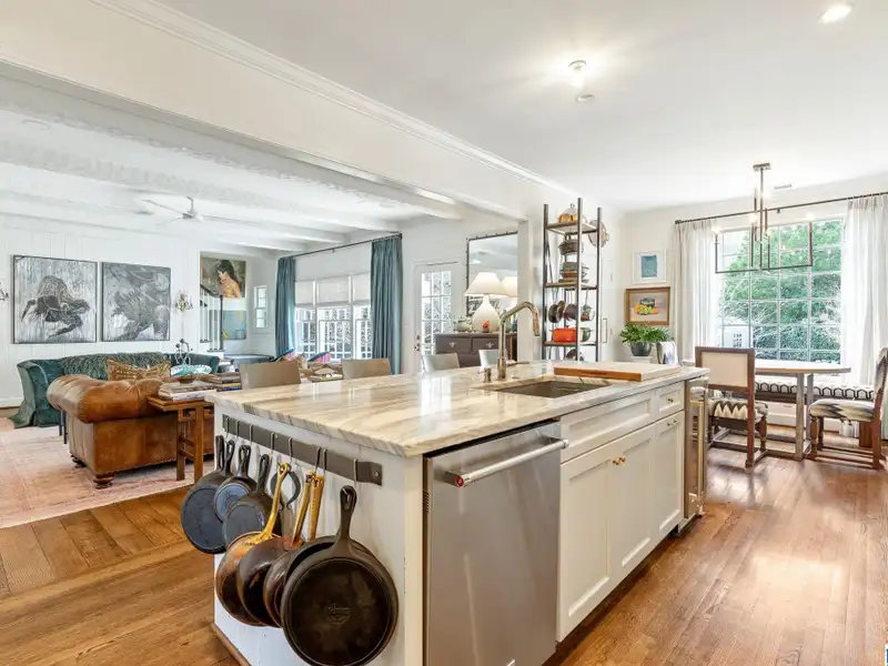 - Kitchen with marble island and gas cooktop