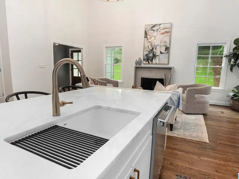 - Limestone fireplace in living room