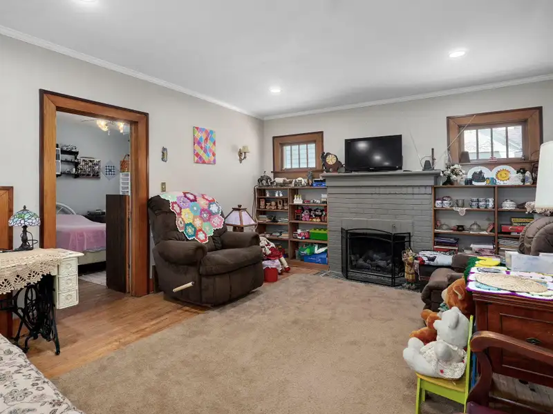 - Large living area with gas fireplace