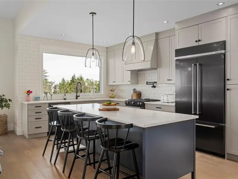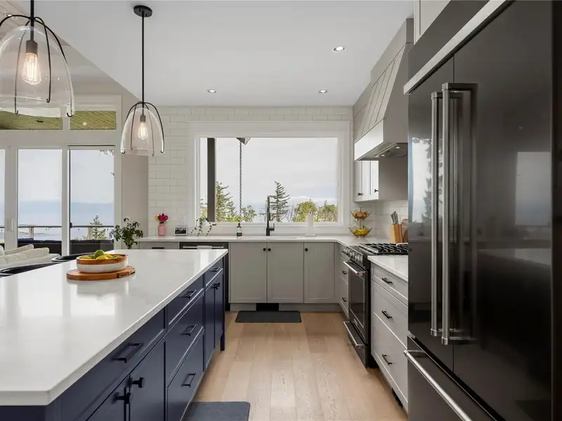 - Large quartz island kitchen