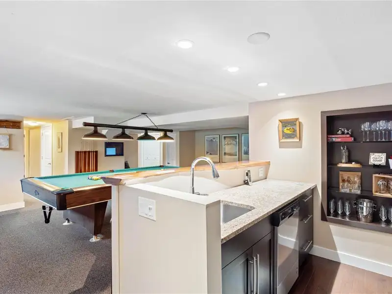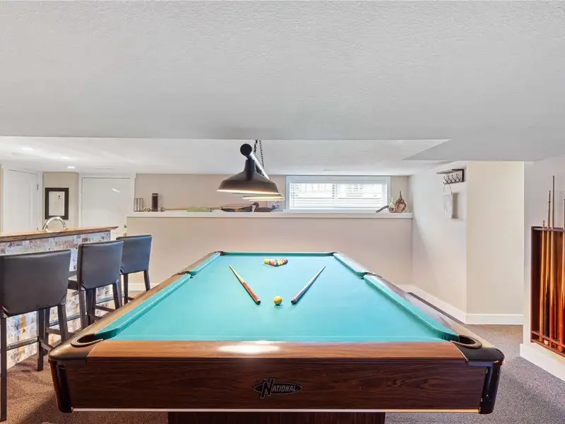 The lower level offers a kitchen/bar area & entertainment room including a pool table, plus suite potential with a separate exterior access, bedroom, and bathroom - ideal for guests & family.