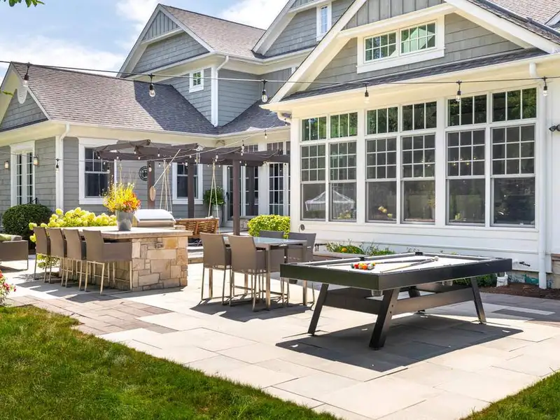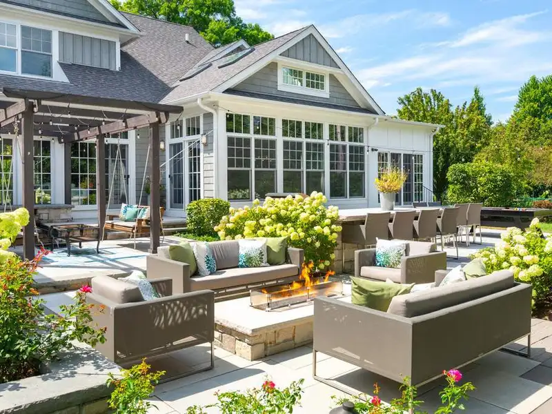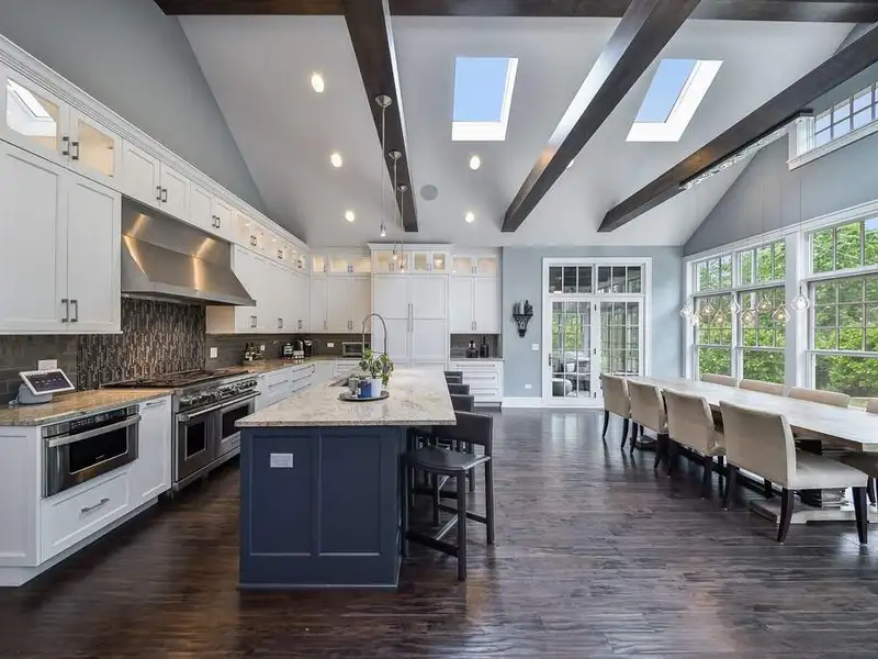 Experience elevated living in this masterfully crafted north Naperville estate, positioned on a beautifully landscaped .67-acre lot just minutes to Downtown Naperville, the train, and highways. Built and designed by award-winning Siena Custom Home Builders and CVG Architects, this one-of-a-kind residence captures the essence of California Casual elegance blended with timeless Nantucket charm. The distinctively curated property has over 5000 SF of living space across the Main House and a Coach House offering five en-suite bedrooms providing flexibility for multigenerational living, guest quarters, or a private retreat. The classic open floor plan of the Main House features soaring ceilings and walls of glass that seamlessly connect the indoor and outdoor living spaces, allowing for expanded living and entertaining areas. Attention to quality and function is visible throughout from the professional Chef's Kitchen featuring Sub Zero, Wolf, Arbor Mills Cabinetry, a 10' island & exposed beamed ceiling, to the Great Room with dual-sided, Italian marble fireplace to the Main Floor Primary Suite with Luxury Bath & private access to the outdoor spa. The executive office has custom built-ins and a separate private entrance. A three-season room, a fully outfitted laundry, and a mud room complete the main floor. Upstairs, three distinctive bedroom suites each offer a unique architectural detail, while a spacious Loft with built-in workspaces creates a second gathering space. The finished lower level is an entertainer's dream, complete with a custom bar, wine room, stage/movie theater, recreation space, and home gym. Under the porte cochere, two heated garages offer space for five cars, and a large circular drive is available for extensive outdoor parking. The Coach House is located above the 2-car garage, has its own private entrance, bedroom/living area, full bath, kitchenette and designated mechanicals. Outdoor living is elevated with custom bluestone patios, a fire pit, a fire table, a tranquil water feature, a pergola with hanging swings, an outdoor kitchen, and a private spa area - all professionally designed and illuminated for ambiance and privacy. Located within the desirable Saybrook Subdivision, an active pool/tennis community, just minutes from shops, restaurants, Metra, and more. Serviced by highly acclaimed Naperville SD203, Beebe Elementary, Jefferson Junior High and Naperville North HS all within close proximity. An exceptional lifestyle offering.