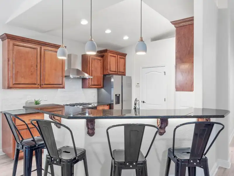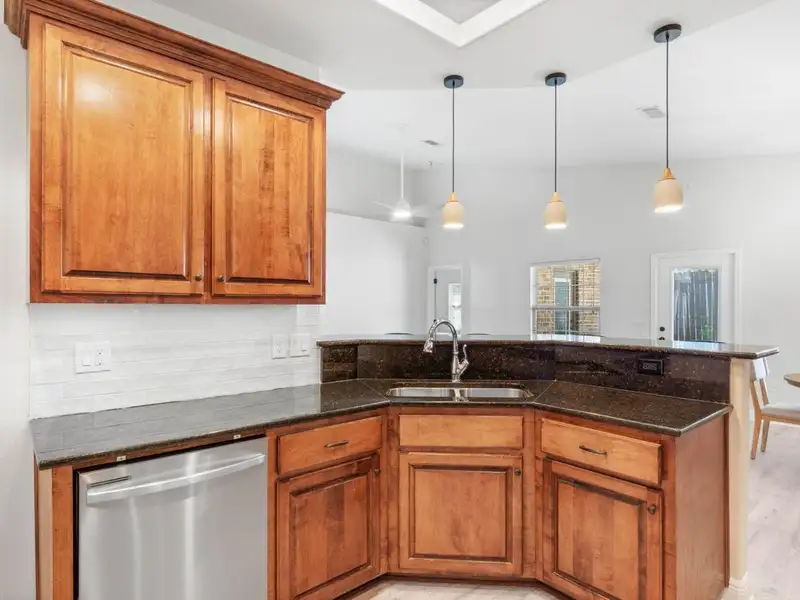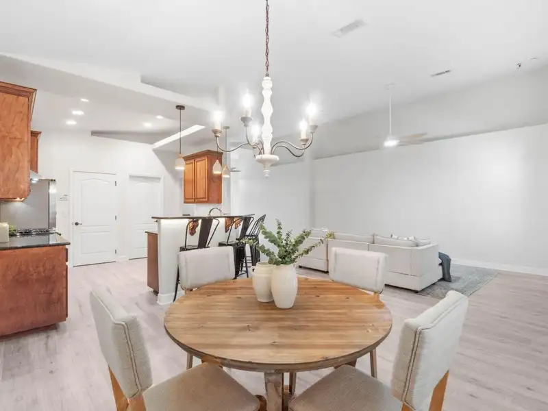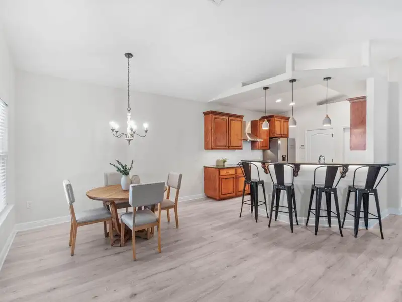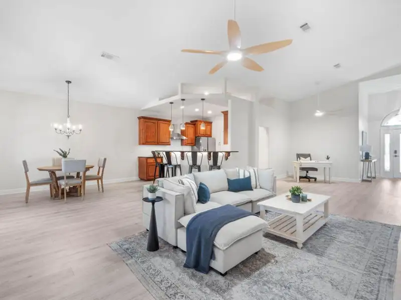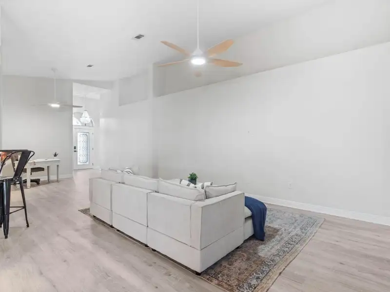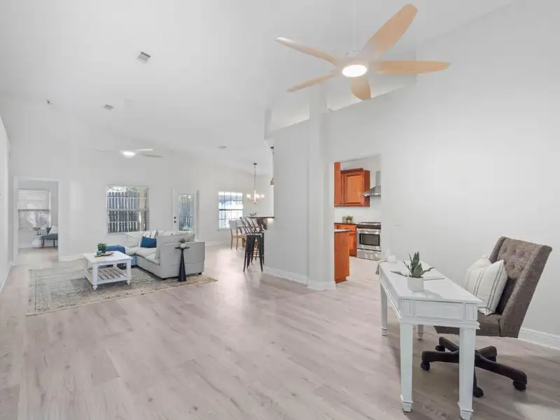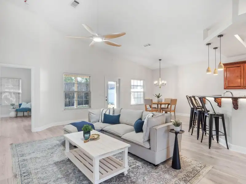 - Vaulted ceilings with open floor plan