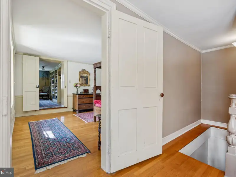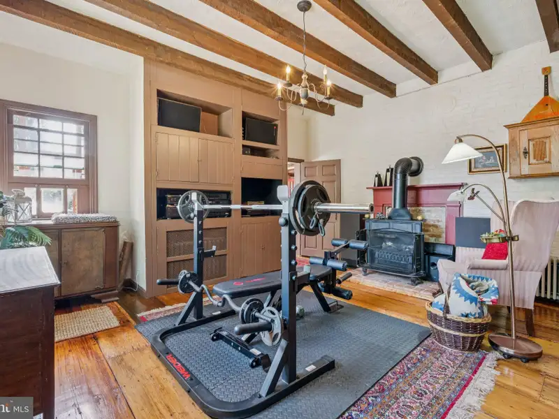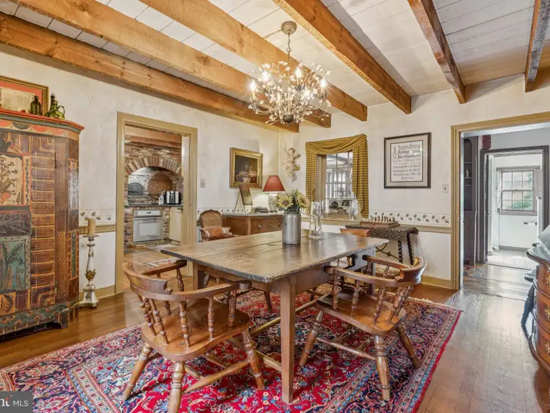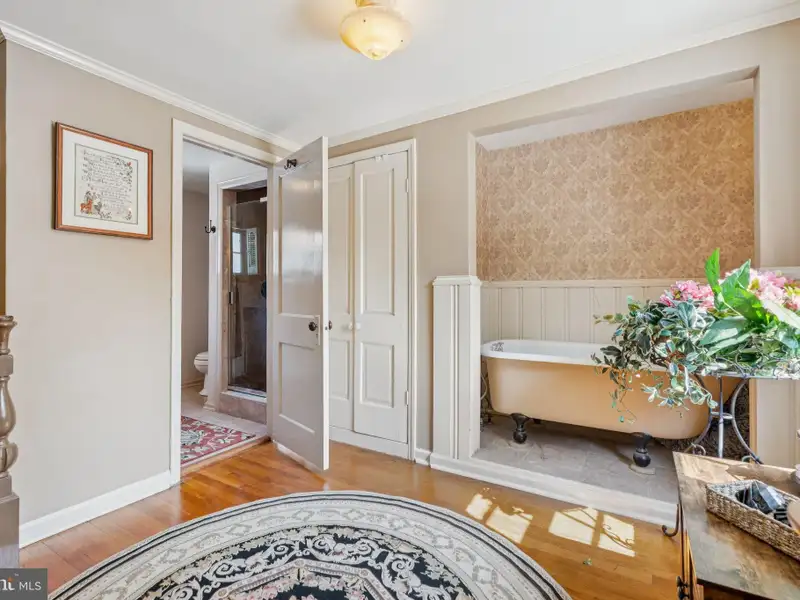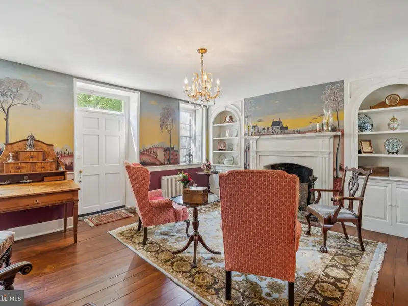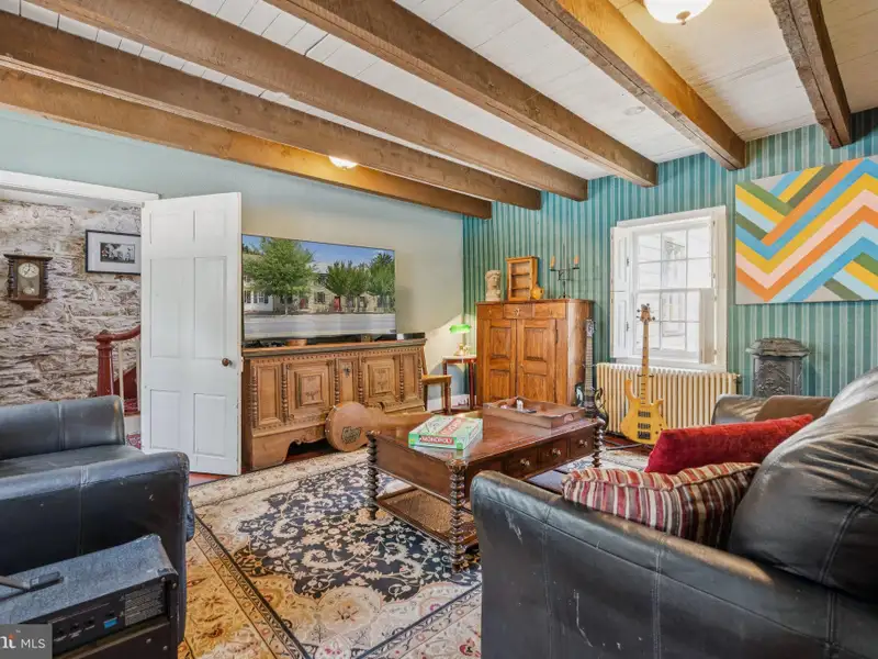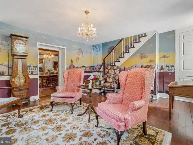 Welcome to 25 West Main Street, a unique and historic property in the heart of New Market, Maryland. Built in 1793, this beautifully preserved Federal-style stone residence-known as the John Morris Prosser House-is the only stone home in town and offers a rare opportunity to own a significant piece of Maryland's history. Set on a meticulously landscaped half-acre lot, the property blends 18th-century elegance with modern comfort and functionality. Zoned for both residential and commercial use, it offers endless potential for a variety of lifestyle or business ventures. Inside, the home offers approximately 4,064 square feet of finished living space across three levels, featuring five bedrooms, 3 full baths. The interiors are rich with character, showcasing original plaster and brick walls, exposed wood beams, moldings, and hardwood floors. The main level includes a formal living room with a fireplace and a custom-painted mural depicting New Market's history, a formal dining room, and an updated kitchen with stainless steel appliances, ample counters, a pantry, and the original brick fireplace. A sunroom/family room adds a bright, welcoming space with a wood-burning stove, an exit to the backyard, and a custom-built "catioa safe playhouse for cats. This room also offers built-in storage and a discreet washer and dryer. The main level grants access to a large unfinished stone basement, ideal for storage. Main-level rooms can serve as bedrooms, offices, studios, or fitness spaces. The adaptable layout suits work, relaxation, or hosting guests. Upstairs, the main house features a spacious primary suite with a bedroom, sitting or dressing area, an updated bath with tub and shower, built-in storage, and a private staircase. Another bedroom or study includes a fireplace. The upper landing has built-in bookcases and a cozy reading nook, with access to two unfinished attics, offering expansion potential. An attached secondary wing, added later, enhances flexibility with a private upper-level bedroom suite and oversized full bath. The main level includes a study or office with a wet bar and separate front and side entrances, ideal for guests, a home business, or rental use. Access to a large two-room attic provides further expansion possibilities. Modern systems, heating/cooling, public sewer, and well water ensure year-round comfort. Outdoors, the property impresses with a five-bay carriage house-imagine using it as an artist's studio, workshop, office, car storage, or gym. The fully fenced lot includes a second alley gate. A remarkably preserved two-level log cabin, estimated to be about 175 years old, stands alongside a historic smokehouse and original outhouse. Additional features include a pool changing room, chicken coop, treehouse, and a charming gazebo that invites relaxation in the garden setting. Outdoor living is further enhanced by a paved terrace and larger paver patio-perfect for entertaining or unwinding. The spacious backyard also includes an inviting inground pool and generous paved parking. Lovingly maintained and thoughtfully updated, the home retains its historic integrity while offering modern livability. Dual residential and commercial zoning provides incredible flexibility-ideal as a private residence, small business, bed and breakfast, or short-term rental. Full historical background and structural details are available. Just steps from New Market's shops, restaurants, and year-round events, this exceptional property combines historic charm, expansive living space, business potential, and walkable convenience. Whether your dream is a family home, boutique enterprise, or both, 25 West Main Street is a rare opportunity.