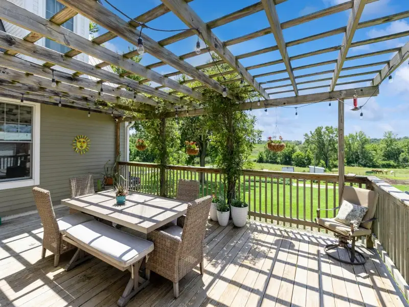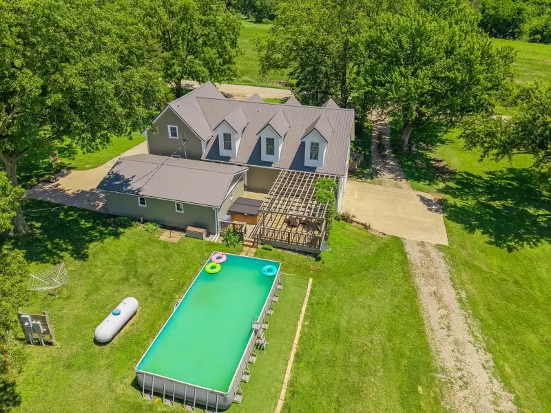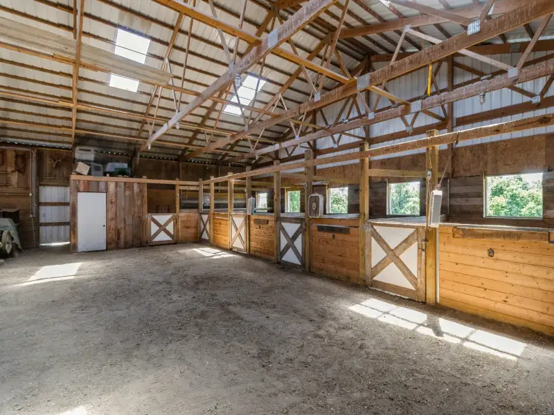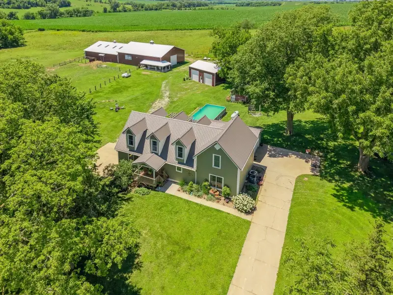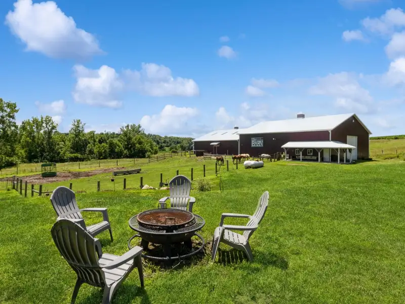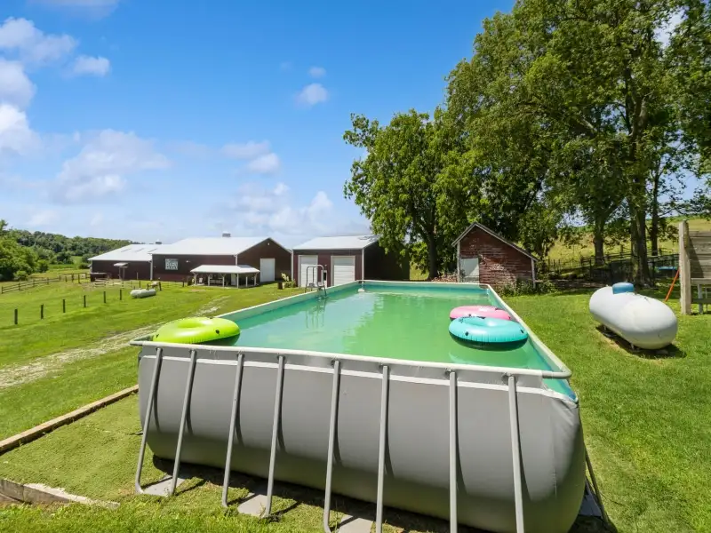 - Pool, hot tub, fire pit, and horse barns