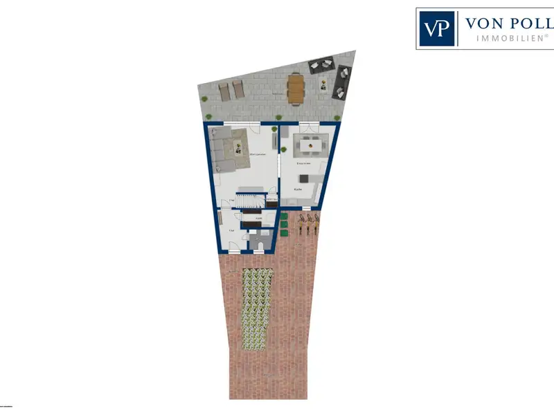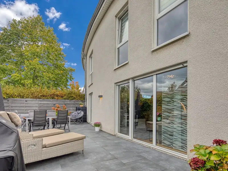 The outdoor area impresses with an easy-care, sunny terrace, which offers plenty of space for seating areas and leisure activities - without requiring much maintenance. A utility room on the first floor offers additional practical usable space.