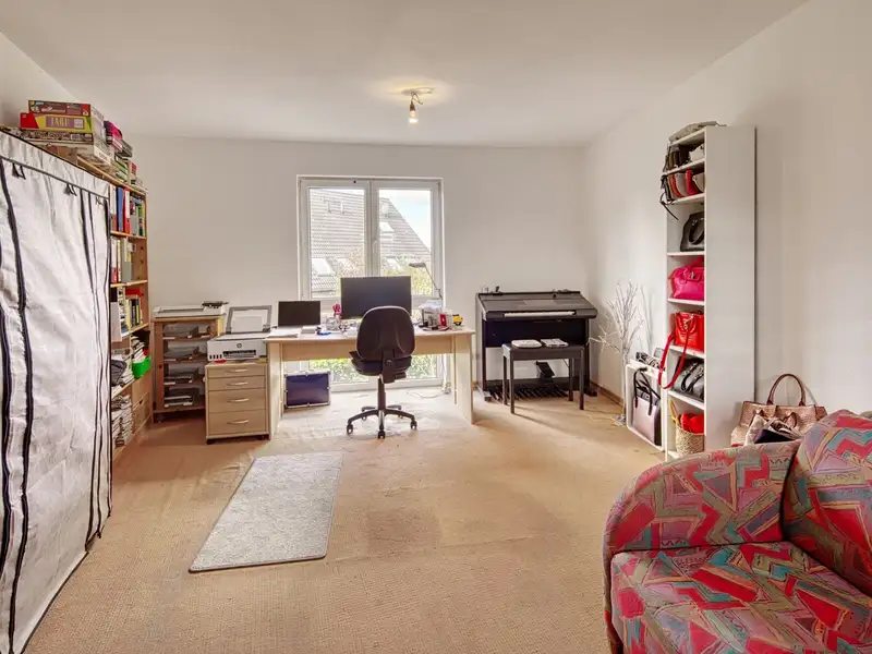 This well-designed mid-terrace house from 1999/2000 impresses with a living space of approx. 168 m² and a plot of approx. 259 m². It offers a comfortable home for families, couples or anyone who values spacious living and space for a home office. The well thought-out room concept comprises a total of five rooms - including four bedrooms - as well as two bathrooms.