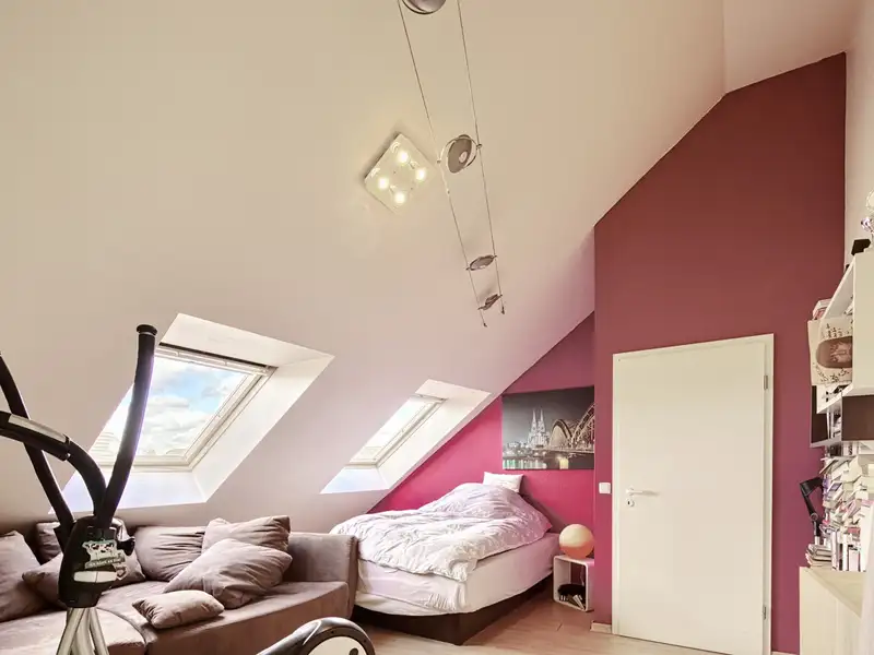 On the top floor - with a ceiling height of up to 3.60 meters - there are two further rooms and a shower room - perfect as a retreat for older children or guests.