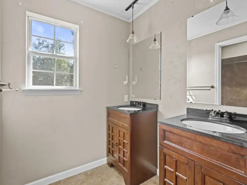 - Double-sink vanity in primary bathroom
