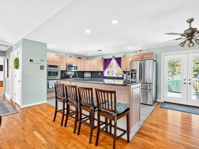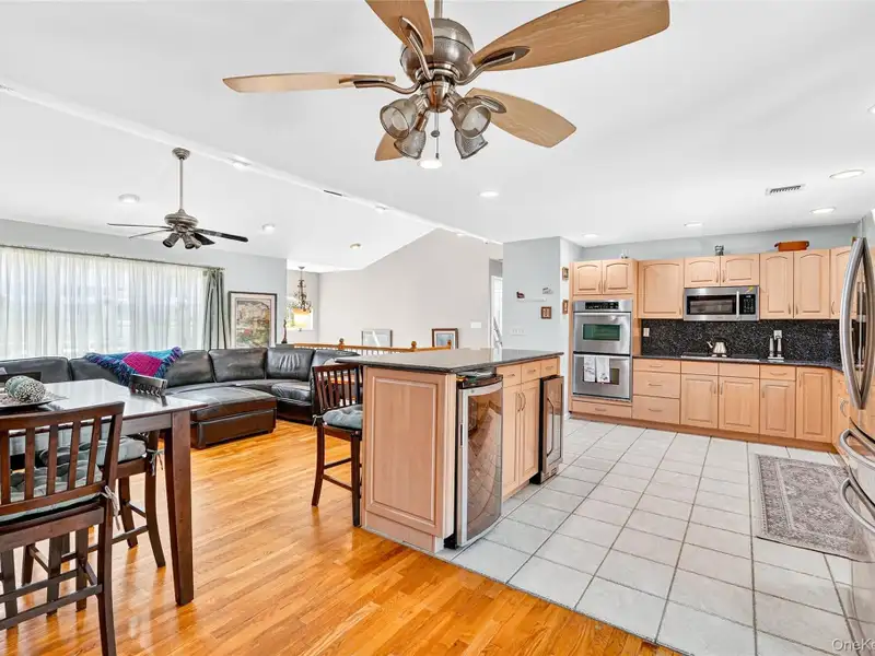 This isn't the typical bi-level that you have come to know. There is a large entry foyer with ample closets for everyone. Moving up the stairs to the open-concept living, dining, and kitchen area brings you to a bright and inviting space, ideal for everyday living and entertaining. And it features a gas fireplace for ambiance. The large chef's kitchen has a bar, 2 wine fridges, and every lower cabinet has pull-out drawers for easy access.