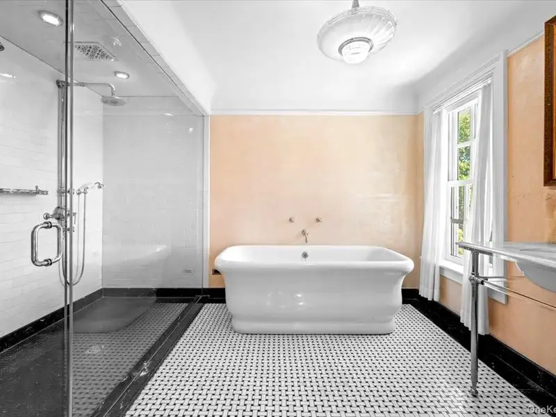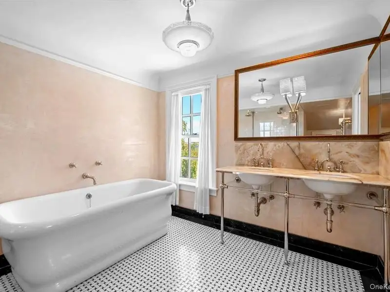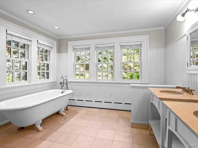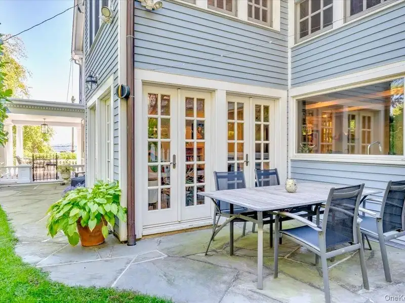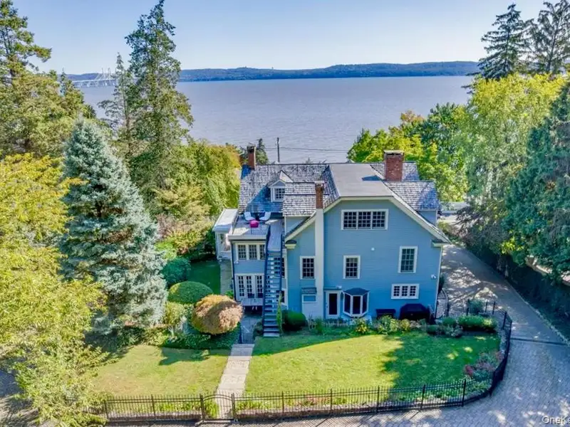 The Periwinkle House - River Views, History, and Soul. Set high above a lush, mature garden with sweeping views of the Hudson River and the bridge, The Periwinkle House is a one of-a-kind Greek Revival jewel - gracious, elegant, and with a great story. What began as a three-room cottage in 1794 grew over two centuries into the 5,016-square foot home standing today - a rare blend of old world craftsmanship and modern soulful luxury. Symmetry and charm define its facade while inside, original architectural details shine: intricate moldings, French doors, soaring ceilings, custom built-ins, cozy window seats, five wood-burning fireplaces, and beautiful wide-plank hardwood floors. The Chef's Kitchen is anchored by the legendary Aga stove, soapstone counters, and a butler's pantry, leading to a sun-splashed breakfast room with French doors which open onto the veranda and broad wraparound porch - perfect for slow mornings or lively summer nights. The formal dining room sets the stage for large gatherings or intimate evenings, and is complete with a built-in bar and a woodburning fireplace. The primary suite is pure serenity with panoramic river views, a huge woodburning fireplace, built-in window seats, a walk-in dressing room with laundry, and a Waterworks spa bath with soaking tub and glass shower. Two additional spacious bedrooms and another Waterworks bath complete the second floor. Upstairs, the third floor surprises with two more bedrooms, full bath, and a media lounge that opens onto a private terrace overlooking the back gardens. Out back, a heated gunite pool and spa are tucked into a fully fenced yard - your own private resort. A four-car garage plus a heated workshop adds flexibility for creatives or collectors, and the U-shaped driveway makes parking and entertaining effortless. Just 25 miles to midtown Manhattan and five minutes to Piermont's riverfront restaurants, cafes, and boutiques, the Periwinkle House balances history, luxury, and lifestyle in a way few homes ever do. This special home is a bridge between centuries. Award winning South Orangetown Schools . The new walking path behind the house links to the Old Erie Esposito Path .