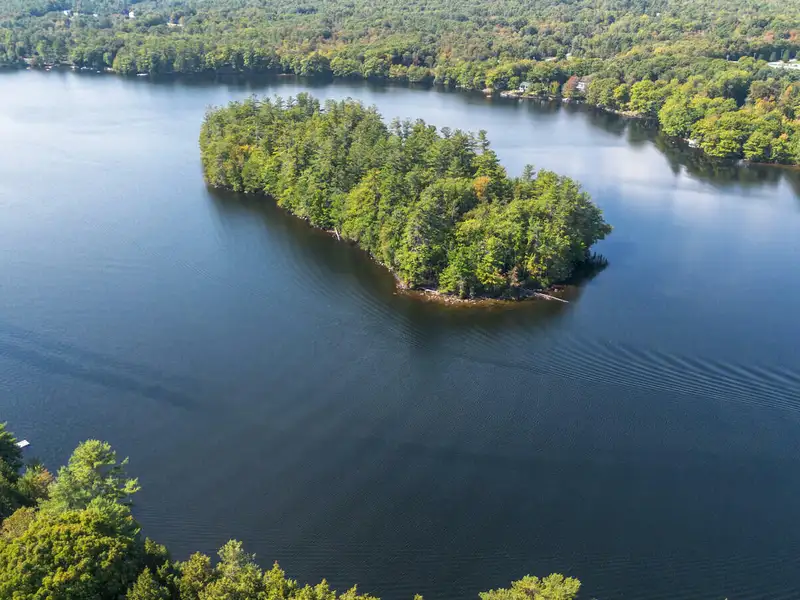 - Private island with 7 wooded acres
