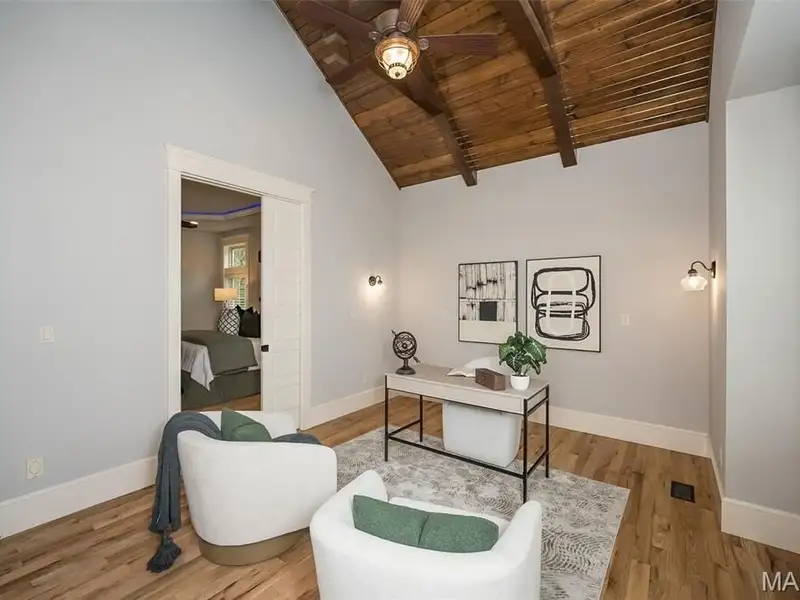 The Birchwood at Bates Bend - This site is in the prime location of Dardenne Prairie and is the Builder's personal residence. The Estate Lot is 1.8 Acres with an irrigated and pampered lawn where the residence is positioned 250 feet from the road for a grand approach and free of HOA rules. Destined for parties for a crowd or just impromptu fun. The front meadow is ready for wedding tents, family soccer tournaments and a future pickle ball court could easily be in your dreams for the rear extensive lawn area. The long driveway becomes the Red Carpet for any event. All that is missing is the paparazzi! *****The Inspiration of the Birchwood Residence was a collective effort of Architect Larry Spraul of LR Spraul Designs, and Custom Builder Tim Griffey of Griffey Custom Homes. The overall theme was to incorporate three loves: “The love of the outdoors”, “Comfortable, yet dramatic spaces”, and “The celebration of fine craftsmanship” that is displayed throughout the home. The inspiration and careful direction of the concept resulted in a special home to share with family and friends, from small gatherings to large memorable events. So many memories are awaiting….. The positioning of the structure led to the creation of several exterior zones: The large meadow has been home to pampering all guests including the 2 resident labs who have worn out the owners with their mastery of “Fetch”. You could also evolve into a skilled “referee” for family football and be rewarded with a whistle to control the crowd. The aluminum fenced rear yard has proven to keep the 4-legged residents and a herd of wild grandchildren corralled and is large enough to have court sports and a pool. .......The yard flows to the right of the home to a private patio area from the walk-out lower level with an additional 2,361 square feet of high ceiling spaces to ignite your imagination. When the pups and kids are coated with the remnants of their outdoor fun, the Family Entry has a pet and people shower center for their re-entry into the pampered world of the interior. The Family Entry contains the perfect drop zones, the Expansive Laundry Center and quick Powder Room access. The finishes are exceptionally executed in every area of the home. From the Main Entry you have a sense of what lies within. The Main Level features 10-foot Ceilings, 8 Foot Doors, and job finished hardwood floors throughout the public spaces and owner’s private spaces. The craftsmanship begins with sleek box beamed ceiling treatment, architecturally correct window surrounds featuring transoms with cross head crowns and 8-inch base trim. The design is sleek and sculptural, with details that will easily embrace a traditional to a polished contemporary setting. This is not a vanilla box by any means. Every corner, every view, leaves something to be discovered. The East Wing of the Main Floor is dedicated to pampering the Owners at every turn. There is no fighting over closet space with two primary custom closets and a place for every shopping treasure. The Bedroom contains a large salon setting with fireplace and pocket doors that lead to a flex space with a breath-taking soaring hardwood ceiling. The owners used the space for a home office, but it could easily be a private den or library. The Owner’s Suite features every item the resident royalty would demand. The shower has room for a crowd, and the acoustics could be perfect for your morning American Idol rehearsal. The large lounging tub overlooks your wooded backdrop. You may be tempted to bring a towel. Review the extensive photography for a complete understanding of what this property offers: An Open Concept that captures the views and flows from Great Room, Private Dining Room, Family Dining, an Island that seats 8 comfortably, a fireside Hearth Room, a Kitchen that has everything including a walk-in butler pantry. Every space gives you the feeling of walking through a magazine. Owner is a licensed agent. Enjoy!!!
