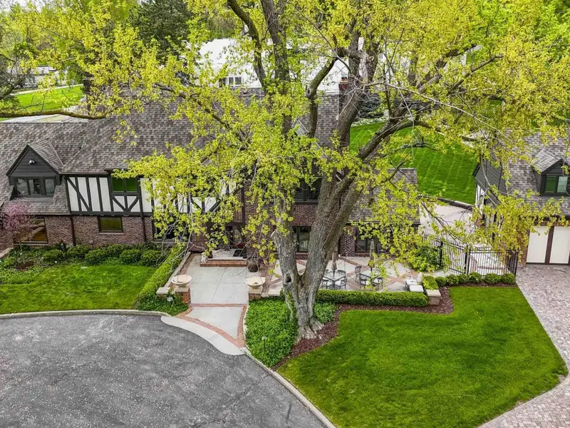 - Stately brick exterior with circular drive
