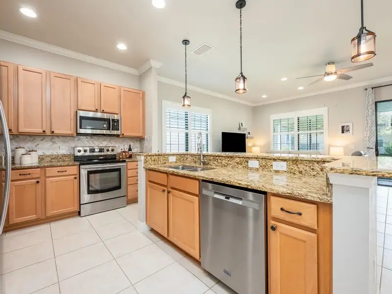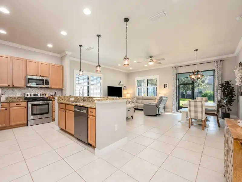 Seller may consider buyer concessions if made in an offer ~ Welcome to Woodland Lakes Preserve, a beautifully maintained GUARD GATED community in East Orlando surrounded by peaceful ponds, mature trees, and natural conservation areas! This lovingly maintained 3-bedroom, 2-bath home combines timeless style with thoughtful modern upgrades, offering comfort, function, and serenity on a spacious lot with a tranquil POND VIEW. Major UPDATES provide peace of mind and lasting value: a NEW ROOF (2024) with a transferable warranty, FRESH EXTERIOR PAINT (2023), NEW A/C (2022), NEW GUTTERS (2022), INTERIOR PAINT (2020), and a Smart Ecobee thermostat (2020). Inside, the owner has curated a fresh, neutral aesthetic with new faucets (2023), CUSTOM BALI PLANTATION SHUTTERS (2022), updated lighting (2020), and LUXURY VINYL PLANK flooring in the bedrooms (2020) paired with durable tile throughout the main living areas. The garage impresses with epoxy flooring and a whole-home surge protector already in place. Step through double front entry doors into a bright, OPEN FLOOR PLAN with high ceilings and elegant crown molding. The kitchen is the heart of the home, featuring STAINLESS STEEL APPLIANCES, granite counters, a large ISLAND with bar seating, recessed and pendant lighting, and a striking HERRINGBONE TILED BACKSPLASH – perfect for the home chef. The open living and dining areas flow seamlessly toward the SCREENED LANAI, where dual ceiling fans invite you to relax and enjoy your FENCED BACKYARD. Your PRIMARY SUITE offers a lovely tray ceiling, three windows for abundant natural light, a WALK-IN CLOSET, and a custom BARN DOOR leading to a private en-suite bath. The SPLIT BEDROOM LAYOUT ensures privacy, with two additional bedrooms and a second full bath conveniently located between them off the foyer. The home is also pre-wired for surround sound speakers, making it ideal for entertaining or quiet movie nights in. Woodland Lakes Preserve offers fantastic amenities, including a COMMUNITY POOL and large playground, all within a well-kept, quiet neighborhood. Perfectly situated near Waterford Lakes Town Center, Lake Nona, Downtown Orlando, and the Orlando International Airport, with quick access to 417, 408, 528, Alafaya Trail, and SR 50. ***Furnishings are negotiable, making this light, bright, and thoughtfully updated home ready for you to move right in. Woodland Lakes Preserve welcomes you home - call today to schedule a tour!