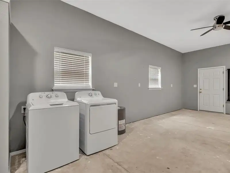 - Oversized 700-sqft garage with utilities