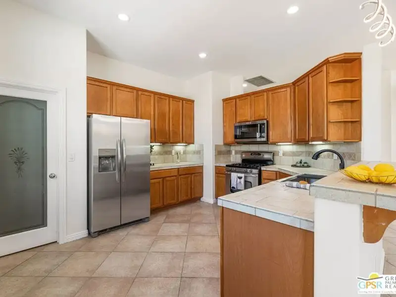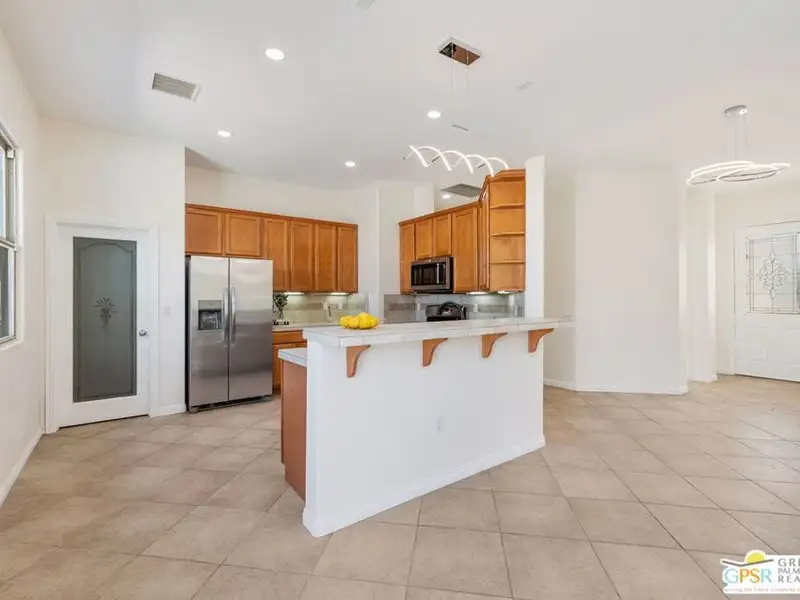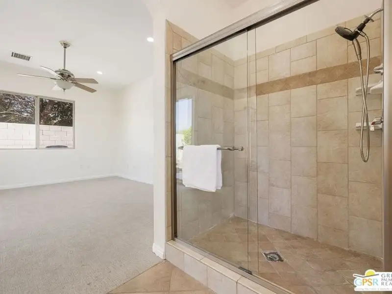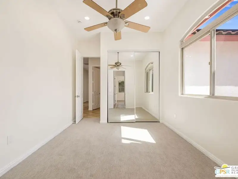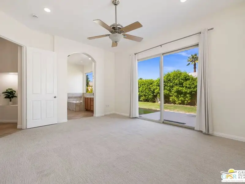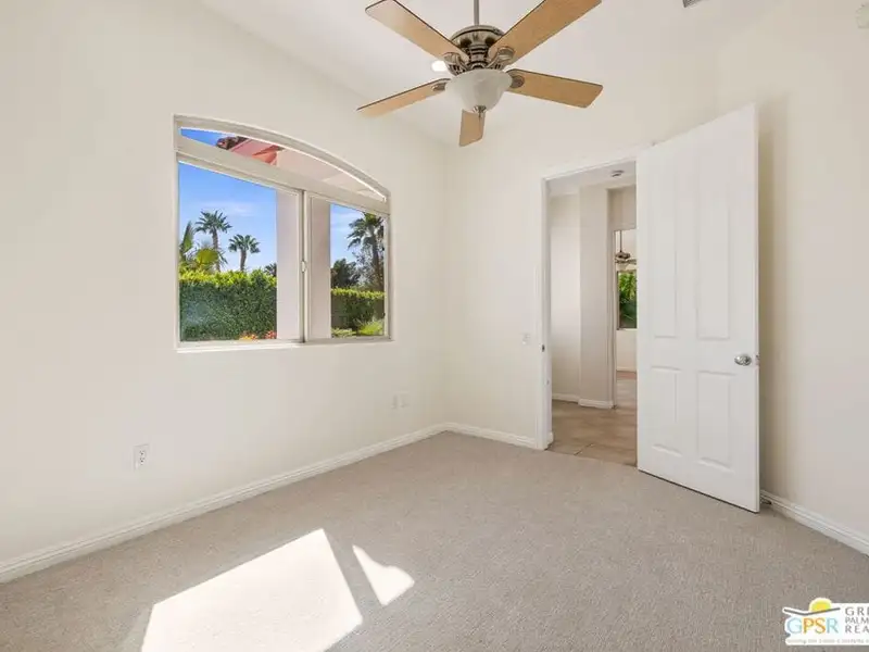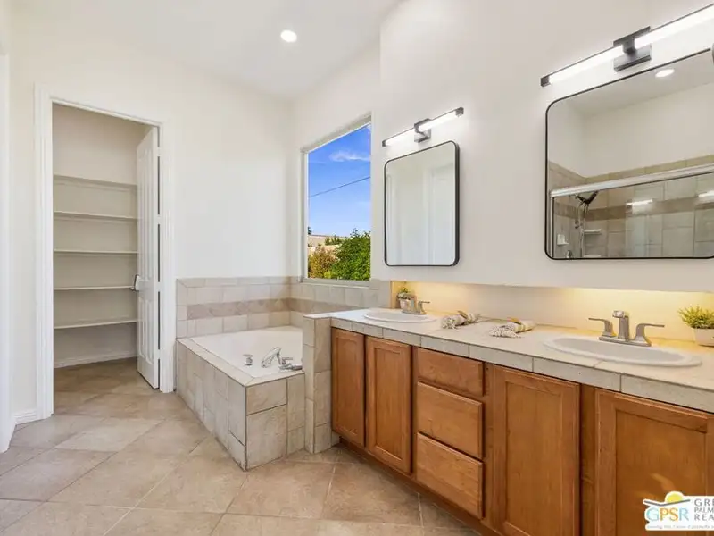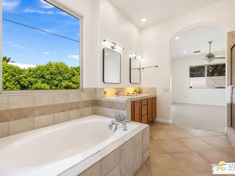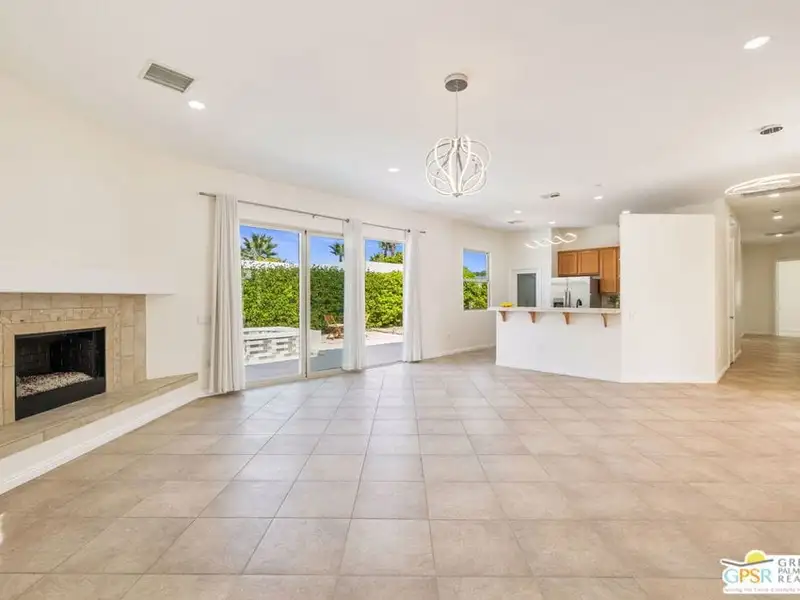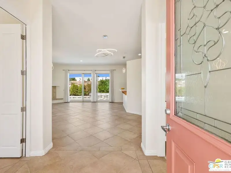Contemporary open-concept Palm Springs pool home showcasing rare 2003 construction in Desert Park Estates. This exceptionally light filled and private residence with 8-foot doors and soaring 10-foot ceilings throughout is a beautiful example of Palm Springs living: stylish, comfortable, and inviting.The property is fully walled for privacy, and once you step through the front gate, you're transported to your own private oasis. The large front courtyard and backyard pool and spa area with newly tiled surfaces, offer multiple spaces for lounging, relaxing, and entertaining, all complemented by a freshly painted exterior. Redesigned desert landscaping provides water efficiency while maintaining a sizable patch of grass for greenery and enjoyment. A tall privacy hedge at the front creates an additional courtyard living area that's ideal for outdoor entertaining.At the heart of the home, the expansive great room features a beautiful fireplace, soaring ceilings, and a triple panel of glass sliders that open to the pool and raised spa. The open-concept layout includes distinct, well-planned living, dining, and kitchen areas, with the kitchen offering tiled counters, a breakfast bar, and a large pantry.Inside, the home is light and bright, enhanced by fresh interior paint that highlights the open design and generous natural light throughout. The spacious primary suite features a beautifully appointed bathroom with dual sinks, a step-in tiled shower, a stand-alone soaking tub, and a walk-in closet with a large picture window framing views of the lush backyard. A second patio off the primary suite provides a private lawn area perfect for pets. The suite is joined by a guest bedroom, a third bedroom, and a newly constructed fourth bedroom ideal for an office or den.Additional highlights include 2.5 bathrooms, a separate laundry room, and an attached air-conditioned three-car garage with a split unit. Your energy costs are kept low with 14 owned and 34 leased solar panels at $203 per month. Thoughtfully oriented to capture mountain views, this home offers ideal spaces for both sun and shade. A truly happy and comfortable residence designed for serenity, privacy, and effortless Palm Springs living. Your desert oasis awaits!