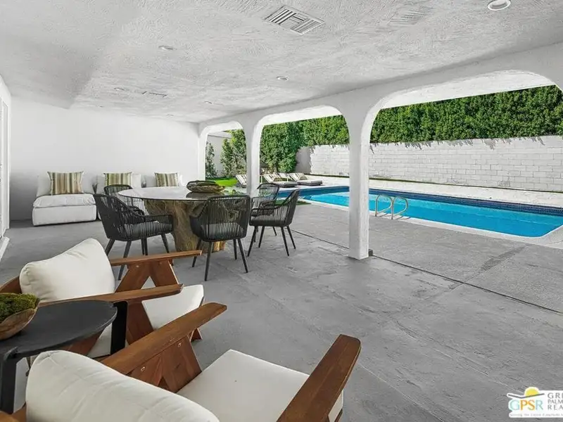 - Covered patio with pool