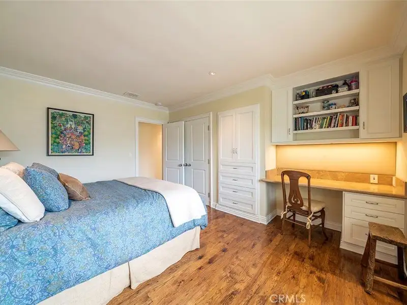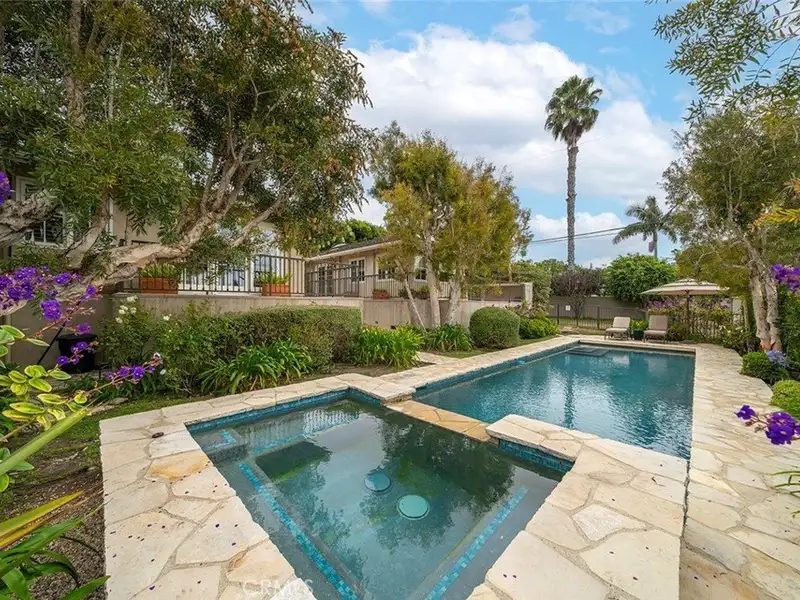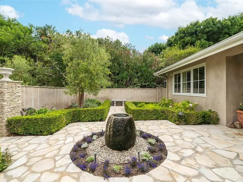 This Lunada Bay stunner is FULLY FURNISHED to allow you to travel through life light -- and settle right in! This 2,770-square foot home is ready and waiting for you on coveted Chelsea Road, a block from the bluffs, on a 10,883 sq ft lot with resort-like landscaping and pool. Remodeled from the foundation up, with custom details and luxury appointments throughout, this single-story executive-worthy home, with pecan/hickory hand-carved floors, has been impeccably designed and furnished by renowned designer Jim Sams. The gated entrance greets you to your private, sunny front courtyard with fountain and room to relax. As you step inside the home, you'll find it lives MUCH larger than it looks and has fabulous indoor/outdoor flow, with outside access from most rooms of the house. The spacious open-floor plan comprises the living room, designer custom kitchen, formal dining area, and library (or office) with Murphy bed. Gather with family or guests in the great room, with built-in cabinetry and bar, and 55-inch television. The living room features a gas-burning fireplace and peek-a-boo ocean views. 4 bedrooms, 4 bathrooms. The Chef’s kitchen features a large center island, beautiful granite tops, custom cabinets, all the appliances and dishes you'll need to dine and entertain:a GE Monogram Built-In refrigerator & freezer, a Wolf Professional 6 burner range, (extra GE Electric professional oven, microwave and butler’s pantry with refrigerator. Bonus for wine lovers -- a whisper-cool, climate-controlled wine room for approx. 250 bottles. When you're ready for rest, the master retreat has a large walk-in closet, a luxurious master bath and French doors that open to an elevated terrace. Two other spacious bedrooms are also ensuite, and have built-in desks and walk-in closets. The 4th bedroom (or office) has a Queen-sized Murphy bed and built-in shelves, desk and files to keep you organized. Stepping back outside, the rear patio provides loads of privacy, with infra-tech heaters and a wonderful table for dining alfresco. The comfortable outdoor furniture, salt-water pool and jacuzzi are the finishing touches on what is like living at a 5-star resort. An attached 2-car garage. Surround-Sound inside and outside, A/C, monitored security. Located right by the bluffs of Paseo del Mar, Close proximity to all 3 PV award winning schools and Lunada Bay shops and restaurants. Owner pays for Water, Pool Service and Gardner! A aprox $1,000 credit to tenant!
