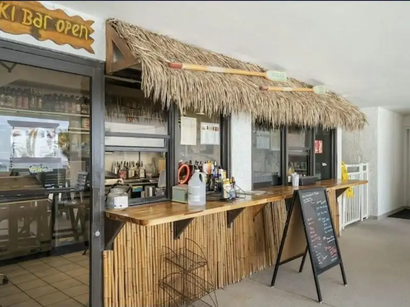 - On-site tiki bar and water activities nearby