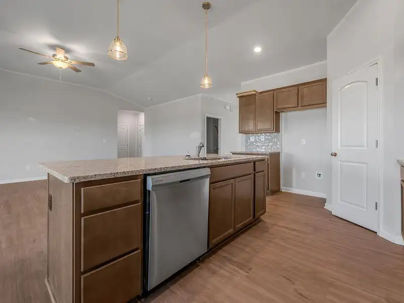 - Island kitchen with granite countertops