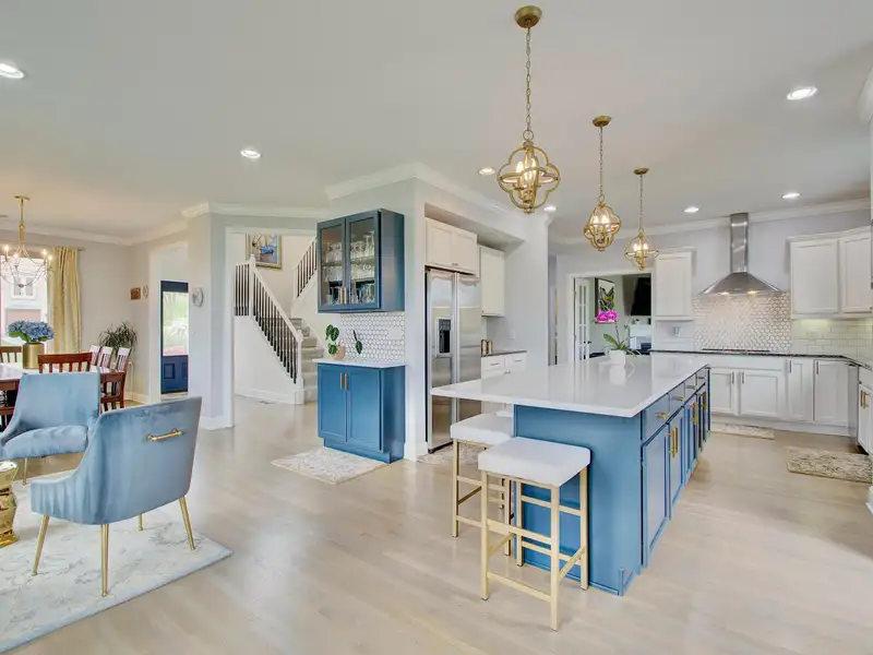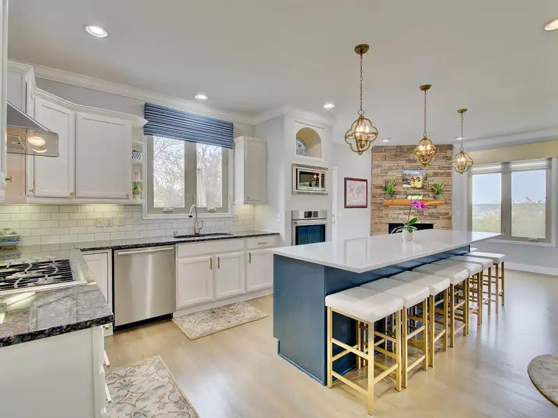 - Kitchen with large island and stainless appliances