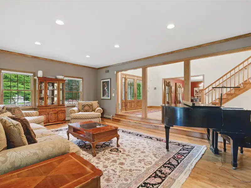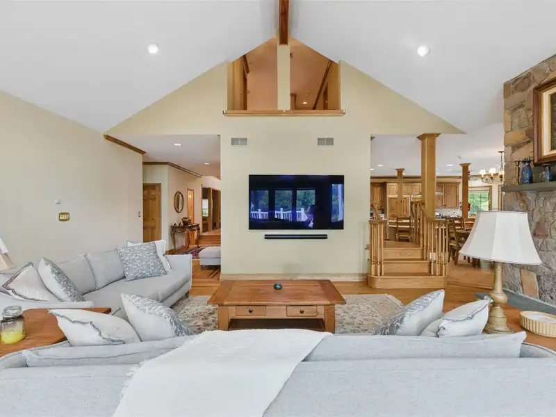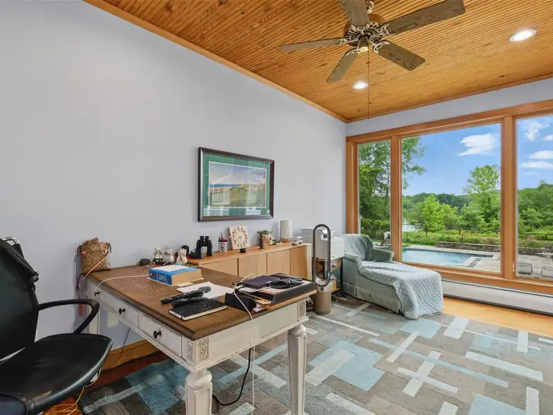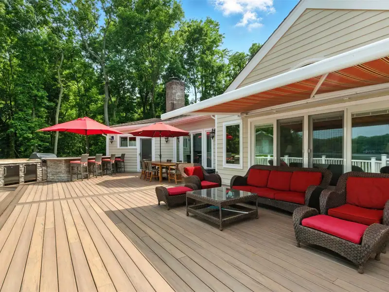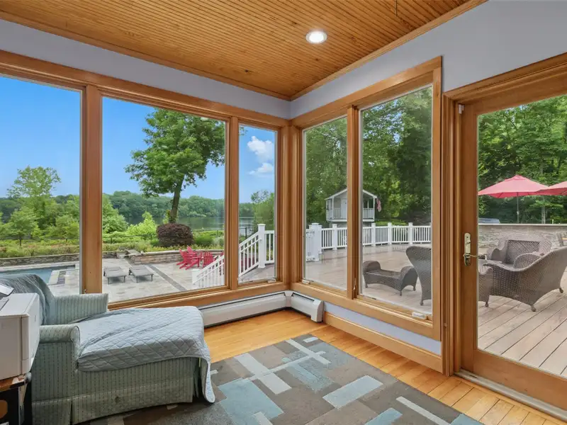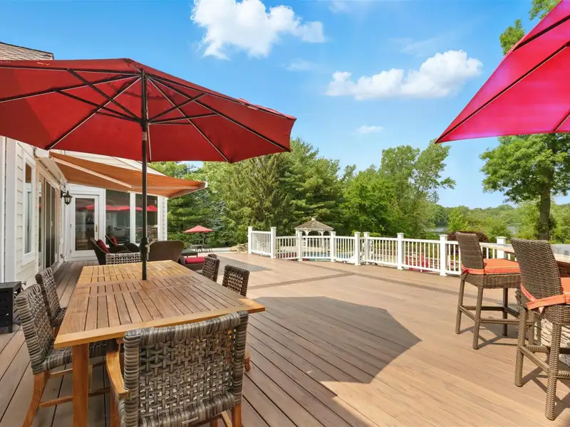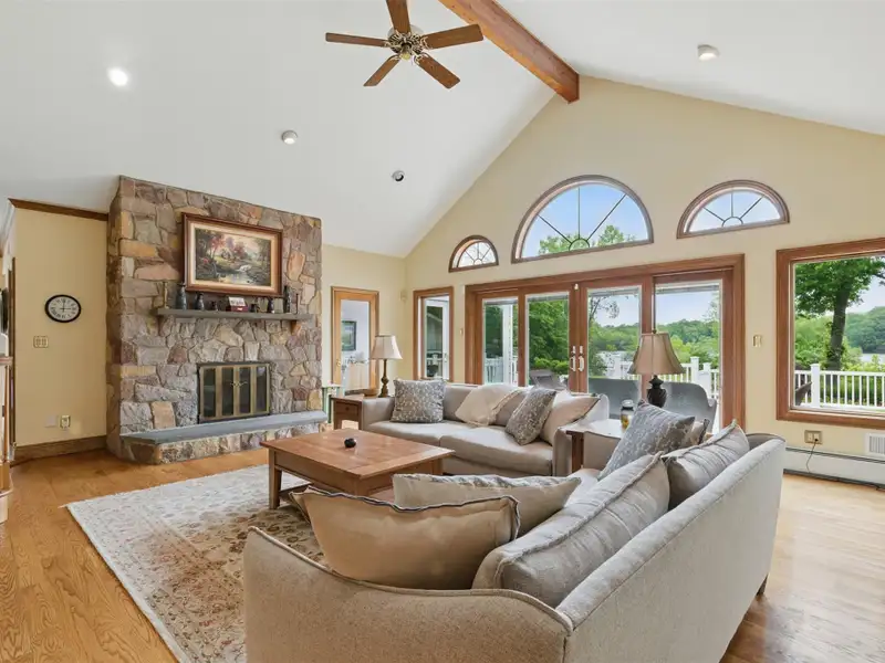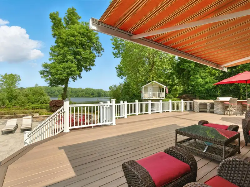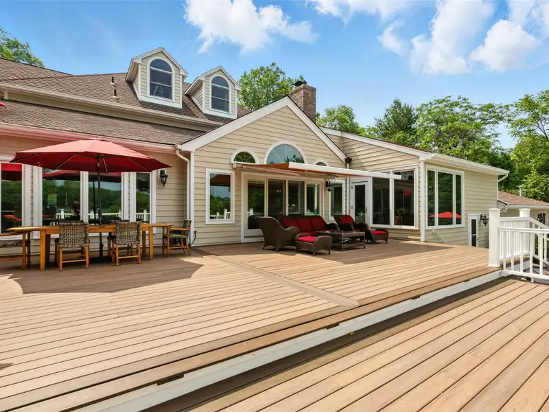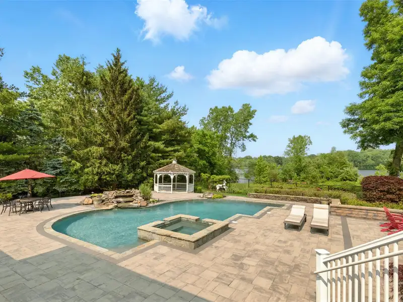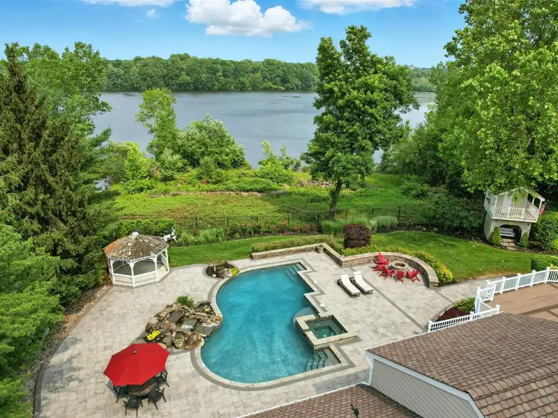 Welcome to Carousel Estate: A Waterfront Sanctuary Less Than 30 Miles from Manhattan. Tucked behind a private gated entrance and surrounded by over 3 acres of lush and thoughtfully designed landscaping, is a rare waterfront estate that offers total seclusion. From soaring eagles to vibrant blue jays, wildlife abounds- making this property feel like a world all your own. This one-of-a-kind estate offers sweeping views of Lake Tappan from nearly every angle. The circular paver driveway makes a grand first impression, featuring a landscaped center island with a koi pond. The layout offers ample parking and effortless access to three-car garage, all surrounded by lush lawns and mature trees providing both privacy and curb appeal. The grounds are a true resort-like paradise: lounge beside the saltwater pool and spa, dine on the expansive Trek deck with built-in outdoor kitchen, unwind in the custom gazebo, or gather around the fire pit under the stars all while enjoying complete privacy and sweeping waterfront views. This grand residence spans approximately 6,000 square feet, showcasing a masterful blend of classic elegance and modern luxury, all set against the backdrop of Lake Tappan. Glass-inlaid entry doors open to a bright and airy two-story foyer where soaring ceilings, an elegant chandelier, and a dual staircase make a lasting first impression. Natural light pours through the arched transom window above, setting a welcoming tone as the home opens into the formal dining room and living spaces beyond. The right of the foyer features a sunken formal living room with oversized windows and detailed wood trim. Formal dining room offers timeless style with inlay hardwood floors and a crystal chandelier. At the heart of the home, the custom Ethan Allen kitchen features warm wood cabinetry, granite countertops, and a large center island with counter seating. High-end Wolf and Sub-Zero appliances are seamlessly integrated, and a side entrance off the driveway provides easy everyday access. The kitchen opens to the casual dining area and continues into a sunlit gathering room with vaulted ceilings, exposed wood beam accents, and a striking floor-to-ceiling stone fireplace. A wall of windows including elegant arched transoms- fills the space with natural light and captures peaceful lake views. French doors lead directly to the deck making indoor-outdoor living feel effortless. The first floor primary suite offers vaulted ceilings, a stone fireplace, and direct access to the back deck and lake views. The spa-inspired en-suite bath features a jetted soaking tub, steam shower, and double vanity. Two separate home offices on the main level offer versatility for work, reading, or creative space. One features custom built-ins, wood flooring, and French doors for privacy, while the other is wrapped in windows with panoramic views of the lake and pool. The second level offers three generously sized bedrooms- two joined by a Jack-and-Jill bath, and one with its own private en-suite. A versatile upstairs den provides the perfect spot for movie nights, quiet study, or simply unwinding. Tucked away on the third floor, this spacious suite with its own full bath and peaceful lake views offers a quiet retreat. Whether used as a guest sanctuary, creative studio, or additional bedroom, it provides privacy, comfort, and flexibility. The spacious basement offers endless potential, a blank canvas of approximately 3000 additional sq ft. Bonus features include a security camera system, alarm system, sprinkler and landscape lighting systems, new landscaping, multi-zone high-efficiency heating with a backup boiler, five-zone high-efficiency cooling with UV lights, a third-floor sprinkler system and so much more. Subdivision potential adds even more long-term value. Ideally located on a quiet cul-de-sac in the award-winning Pearl River school district, Carousel Estate offers the rare opportunity to live an extraordinary lifestyle every day.