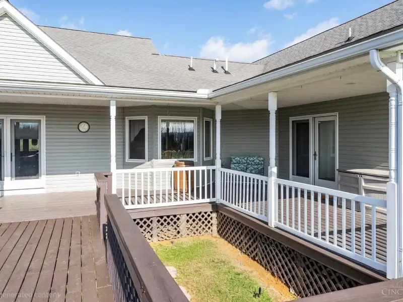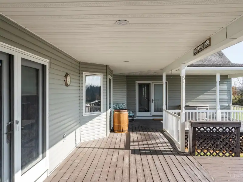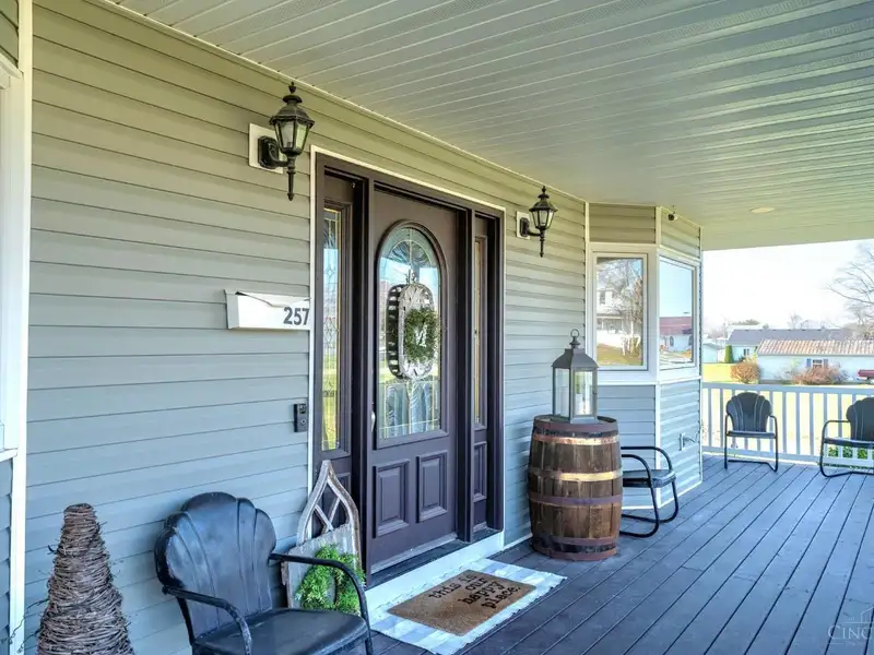 - Rear covered porch with French doors