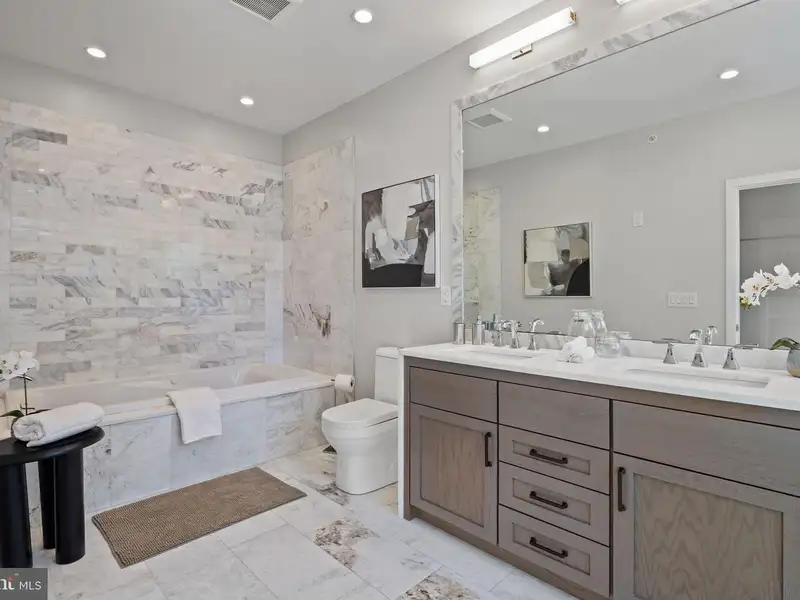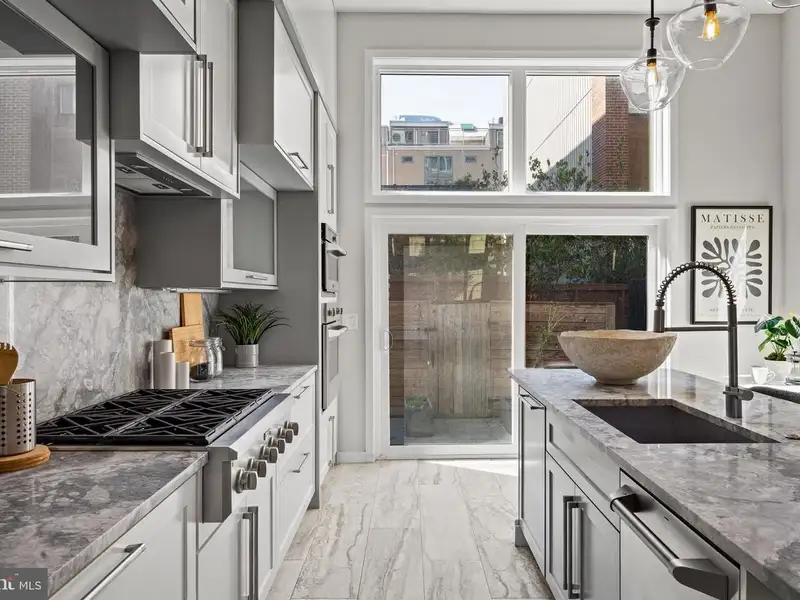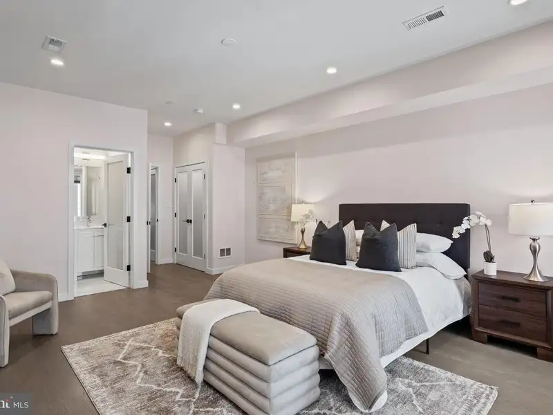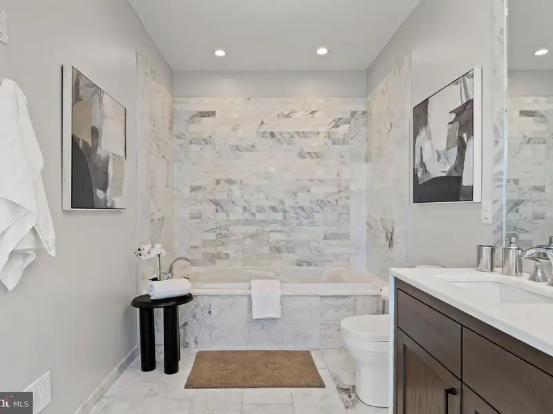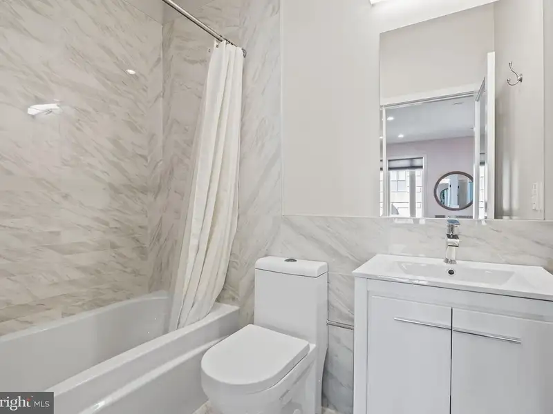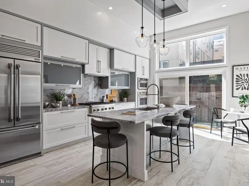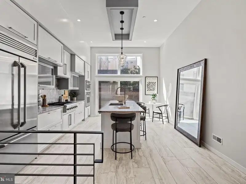 On a quiet, tree-lined street, this stunning 4-bedroom, 4-bath townhome blends historic character with modern luxury. New construction in 2019, the home features soaring ceilings and an exposed brick wall preserved from the original c.1880 structure. The open-concept first floor flows through to a chef's kitchen boasting marble countertops, premium stainless appliances, and abundant natural light. A fenced backyard with stone patio offers the perfect spot for morning coffee or outdoor dining. On the second floor, two spacious bedrooms feature generous closets and en-suite bathrooms, while a laundry and utility closet are discreetly tucked away on the landing. The third-floor primary suite is a private retreat with dual closets, a Juliet balcony, and a spa-like bath with jacuzzi tub and dual-head rain shower. A rooftop deck with unobstructed Philadelphia skyline views makes an ideal space for entertaining or relaxing. The finished basement provides a flexible space for a media room, home office, or guest suite, complete with an en-suite bedroom. Permitted parking in the lot at the west end of the block will be transferred to the new owner. The current owners made premium upgrades throughout the home with features including custom millwork and cabinetry, Pennsylvania bluestone patio, luxury light fixtures, and Farrow and Ball low VOC paint. Perfectly situated in Logan Square, 2106 Spring St. offers the best Philadelphia has to offer with the city's museums, top restaurants, parks and river trail all within a short walk. At the same time, convenience is maximized with a Whole Foods, Trader Joes, and Giant Heirloom Market around the corner, easy access to major highways and 30th Street Station just a a 10-minute trek. Incredible for commuting to NYC or popping out to the Main Line. Located in the Albert Greenfield catchment, this home is also steps from top private schools, the Franklin Institute, Boathouse Row, and the upcoming Calder Museum. With a property tax abatement in place through 2029, this home offers a rare mix of luxury, location, and long-term value. Spring Street is a treasure in Philadelphia's most sought-after neighborhood with a vibrant community of accomplished civic and business leaders, artists, doctors, and young families alike.