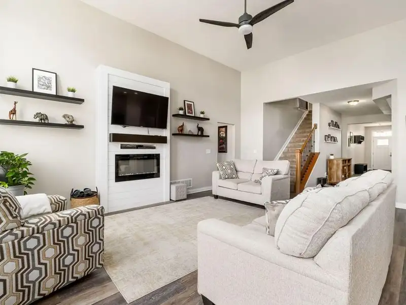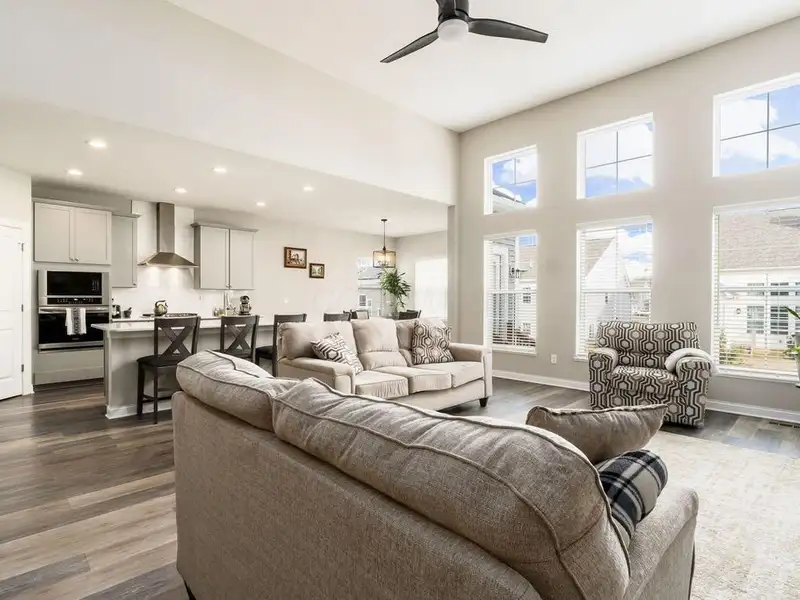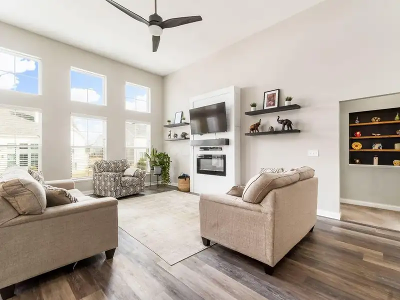 - Great room with soaring ceilings and fireplace