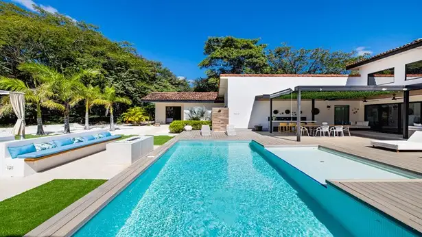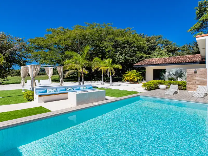 Introducing Los Almendros 51, a unique tropical-modern home that offers a very attractive blend of elegance, functionality, and comfort, along with a great sense of privacy and connection with nature. This stunning golf-front home is in the coveted Los Almendros community, within the very sought-after Hacienda Pinilla development, where you can find a plethora of luxury services, to cater for all tastes and where you can spend endless hours of fun and relaxation.Casa Los Almendros 51 comes fully furnished and comprises of 6 bedrooms, 6 bathrooms and 2 half bathrooms, with an ample living space of 5296 sq ft, a total construction of 7696 sq ft, within a lot of half an acre, giving you the space to host and entertain large groups of friends and family or for vacation rental purposes. In fact, the number of rooms, top notch amenities, its privileged location and low maintenance costs (solar panels, artificial grass, durable materials), makes Los Almendros 51 your ideal choice when looking for a property with great income generating potential. It already has future rentals accounting for $120,000 in just 2 months of being in the rental market.Upon arriving at the property, you will notice its modern design, crowned by an impressive lobby, ideal for meeting and greeting your guests. When entering the house, an ample hallway works as a preamble to the beautiful social areas of this home.The modern and spacious kitchen is the dream of people who love to cook, as it comes fully equipped with everything necessary to prepare delicious meals in a comfortable way. The ample cooking island and the rest of the cabinetry come with lights underneath, activated by contactless sensors, giving it a modern and classy effect. The high ceiling keeps the kitchen cooler and allows for lots of natural light to fill that area. Next to the kitchen is the laundry room and the two cars' garage, both areas are sizeable.Towards the right are the living and dining room, beautifully furnished and seamlessly integrated with the terrace and pool area through glass sliding doors. A hallway connects the social area with the half bathroom and two master bedrooms, each comprising of walking closet and ensuite bathroom. Both bedrooms are tastefully decorated with tropical murals, bringing color and join to them. The other four bedrooms are distributed two on each side of the pool and each bedroom has its own ensuite bathroom. This distribution gives good privacy to guests and easy access to the pool and terrace area.The terrace offers lounging chairs with a stunning view of the pool and the green areas, where you can soak up all year-round sunshine and be mesmerized by breathtaking sunsets. The BBQ area offers a dinner table and a large countertop with a built-in grill, ideal to enjoy meals and gatherings under the beautiful Costa Rican weather.The impressive pool area is crowned by a fire pit and an outdoor bathtub surrounded by palms, where you can have very relaxing baths under the stars. Another key feature of Los Almendros 51 is a brand new cinema for twelve people, adding to the great value proposition of this home and maximizing the potential for rental income. Hacienda Pinilla it’s a 4500-acre gated community with 3 miles (5km) of coastline and just 15 minutes from the world famous, Playa Tamarindo and just 1 hour away from Liberia International Airport. Within this luxury community, you’ll find multiple world-class surf spots, an 18-hole golf course, an exclusive beach club & restaurant, equestrian center with horseback riding, 2 tennis courts, 40km of mountain bike trails and the JW Marriott, that encompasses 5 restaurants, spa and the largest pool in Central America. In Hacienda Pinilla you will find a place where the deep legacy of a Costa Rican ranch is perched on the shores of the pristine waters of the Pacific Ocean in one of Costa Rica’s most spectacular settings. A place where every day brings a new experience and lasting memories.